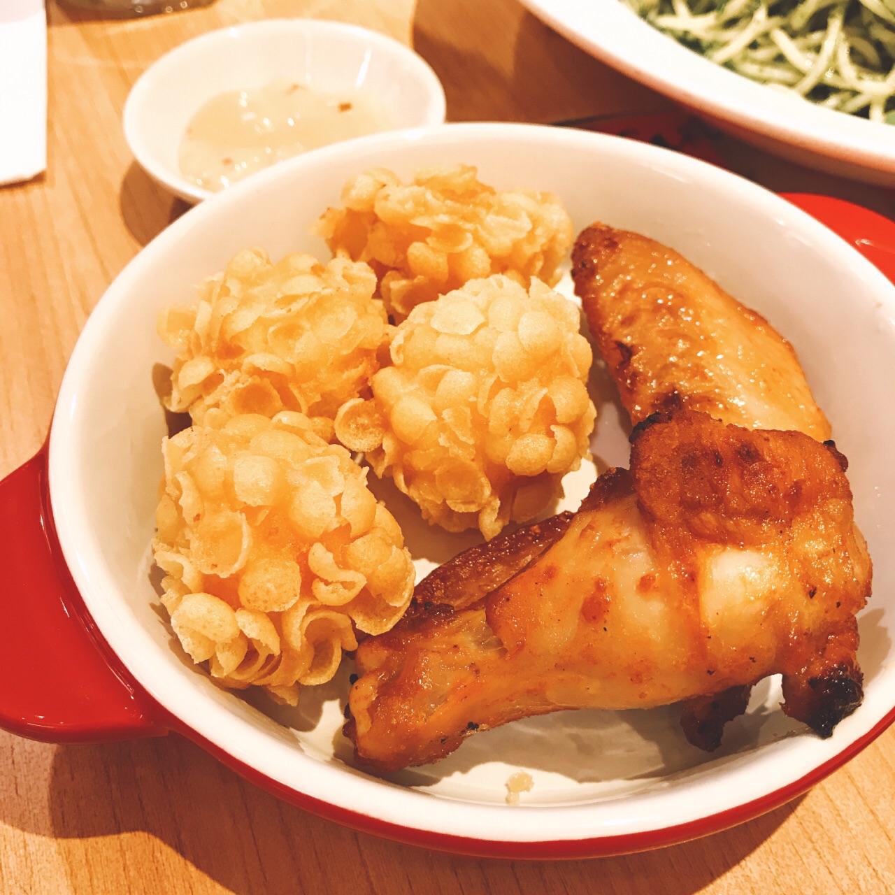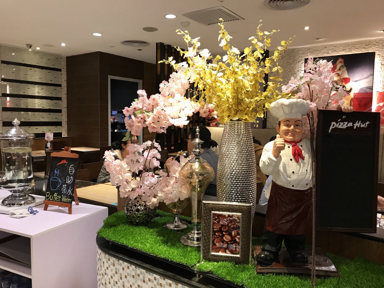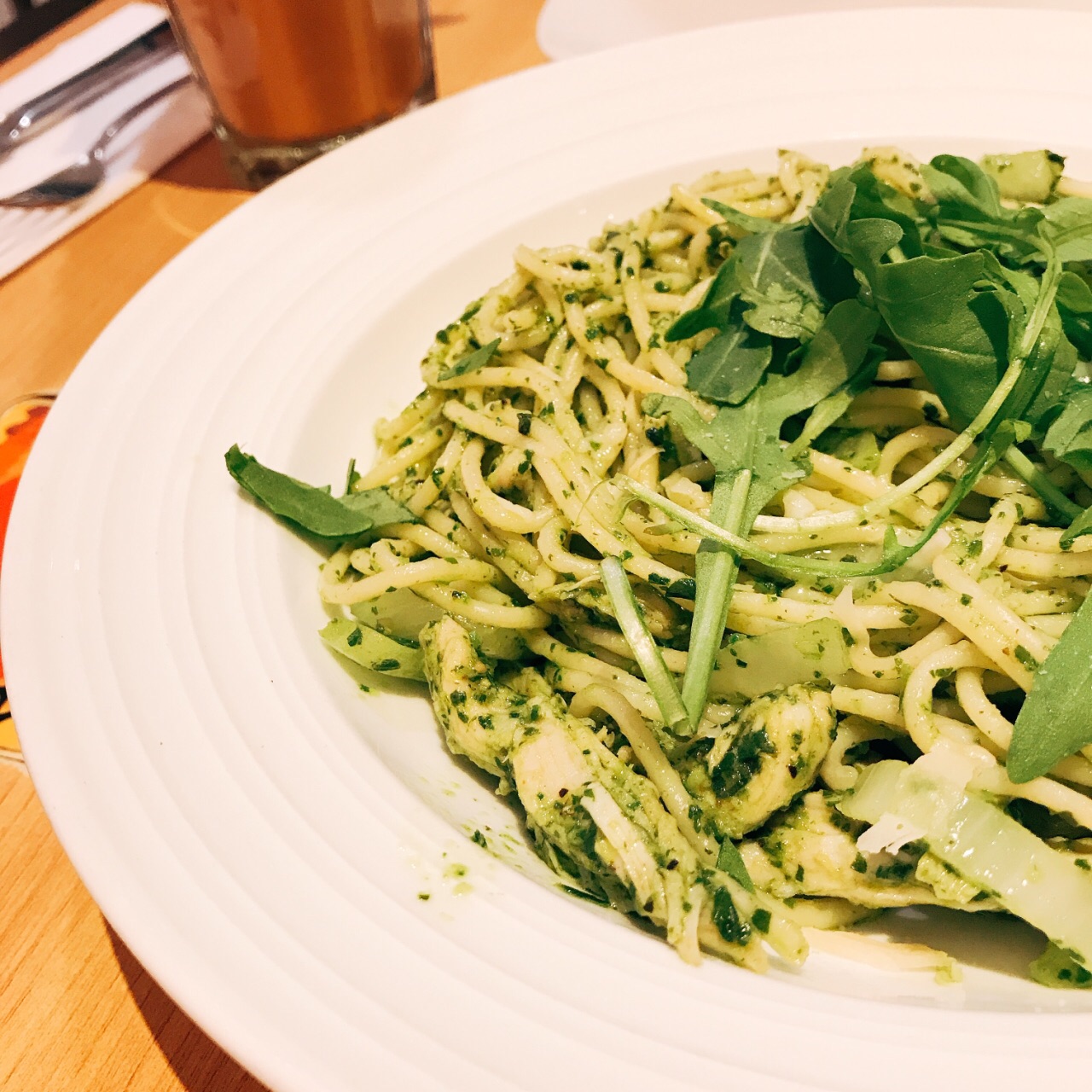 [交通] 在万菱汇负一层靠近扶手梯处,挺好找的。建议早点来排位,一到饭点高峰期就需要排排队,但换桌率还是蛮高的,不用等很久。 [装修+服务] 这就不详细说了,西式年轻化,到时的必胜客都差不多样。感觉服务员们都很忙…柠檬水是自助,套餐下单时服务员们都很熟手~ [出品] 我们是刚好有券就过来吃,但实际上那个是团购券呵呵,商家诱惑顾客来消费罢了~好就好在,我觉得现在出品比以前好一些了。 罗勒意面:觉得罗勒的味道还好,不会太重,总体比较清爽,但一盘绿的我觉得可以加点小番茄点缀一下啊,不然会有点让人缺乏食欲… 鱼籽酱虾球+浓情烤翅配千岛酱:套餐里的小吃拼盘,感觉还好,烤翅比较入味,虾球个还算大,虾肉有点松,味道还好 pizza:我们点的忘了哪款pizza了,看起来像超级至尊的,可能因为人多所以上得比较慢,烤得还不错趁热吃会有拉丝,但底比较厚…很饱肚