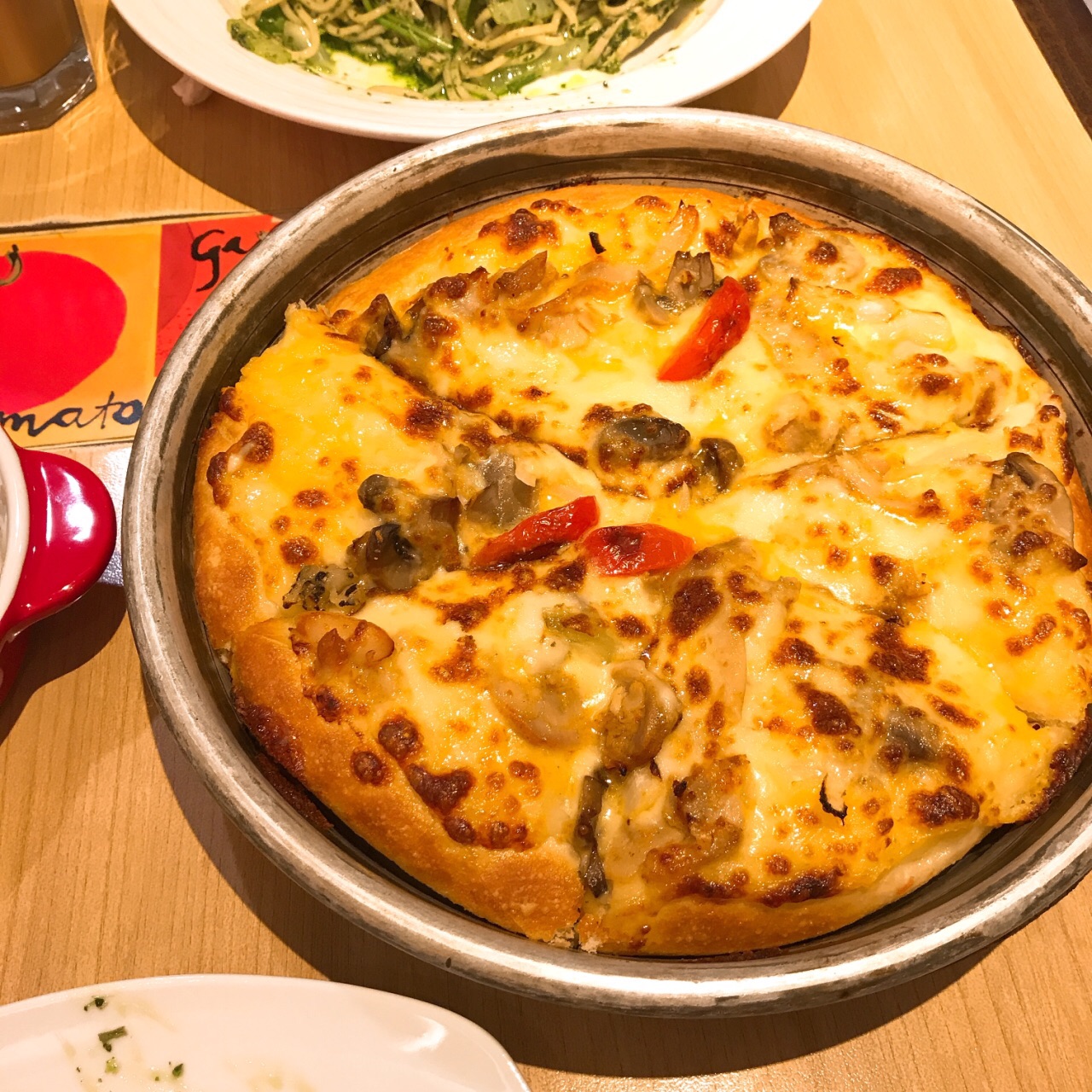 ...,看起来像超级至尊的,可能因为人多所以上得比较慢,烤得还不错趁热吃会有拉丝,但底比较厚…很饱肚