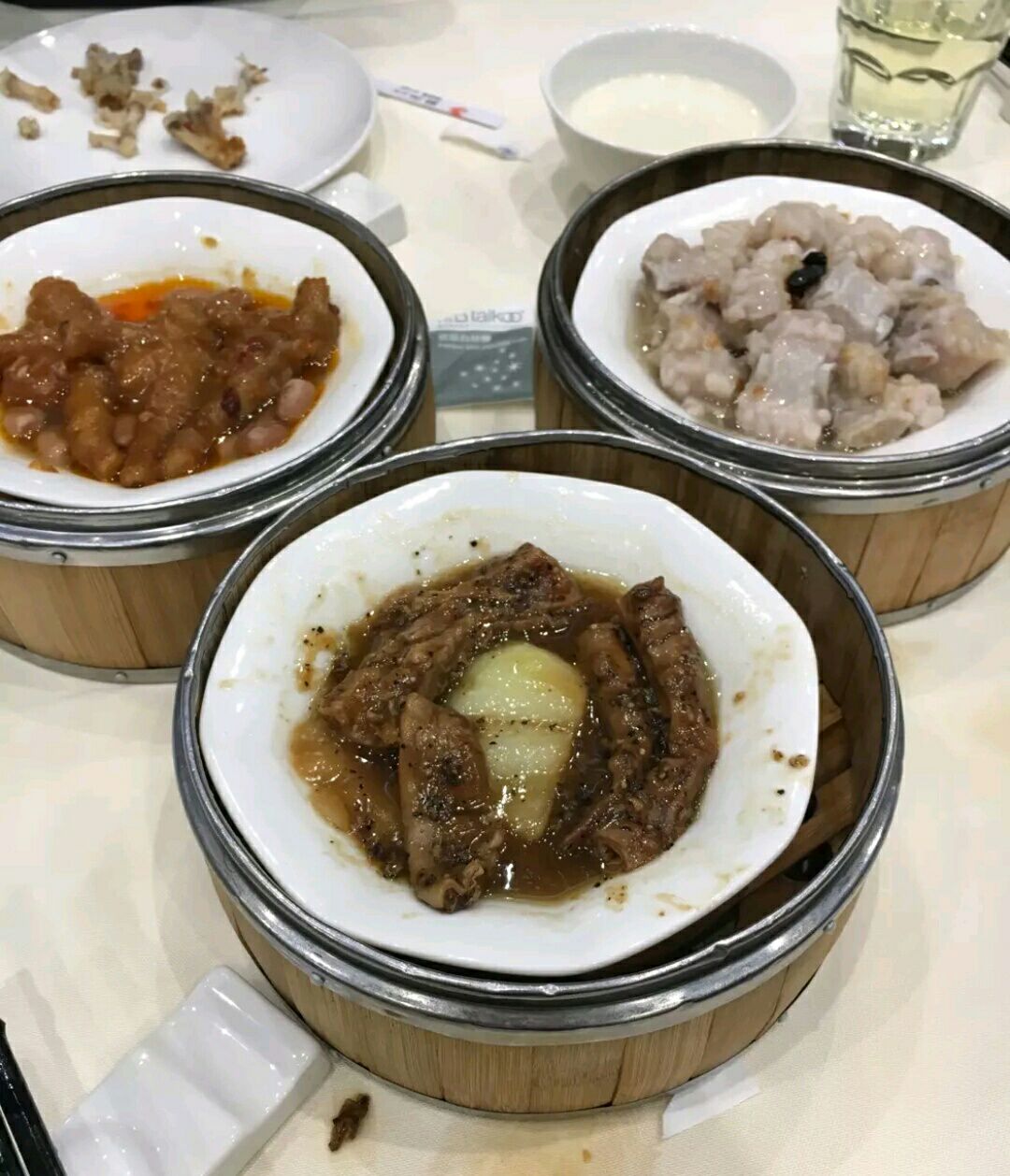 3人一起去吃,点了菊花茶,13元一位。但冲出来很淡没菊花味。不好喝。那个凤爪抓的粉很多,吃起来很粗糙,黑椒猪大肠也是这样。虾饺吃起来很干不好吃。蒸排骨是在里面最正常的味道还可以。灌汤小笼包整个就是猪肉丸不好吃。