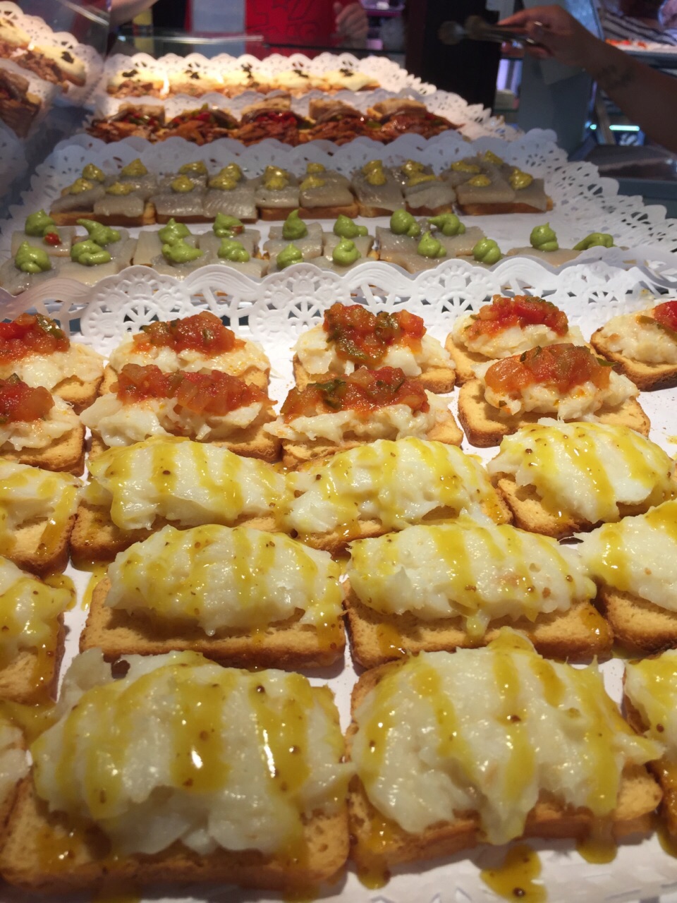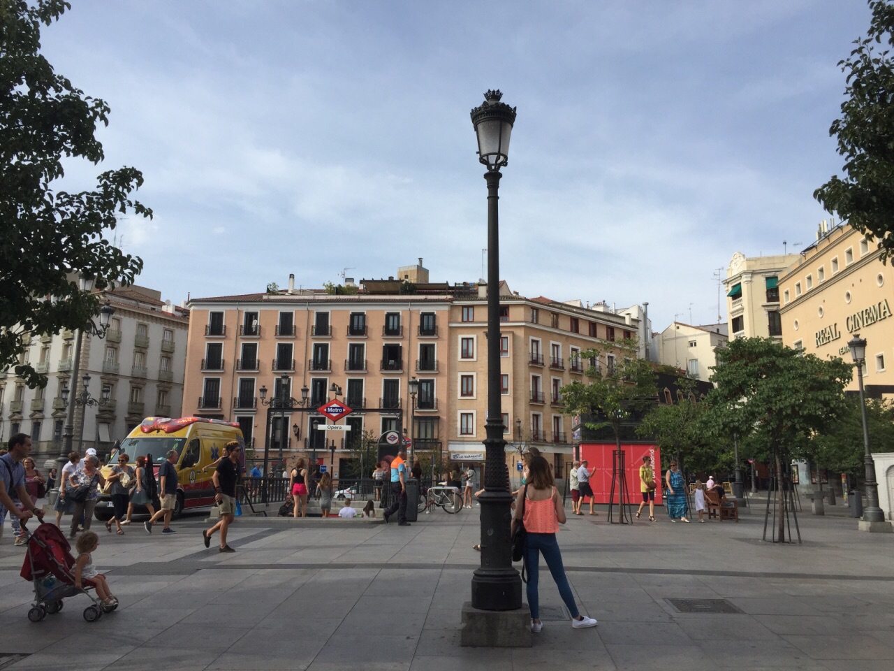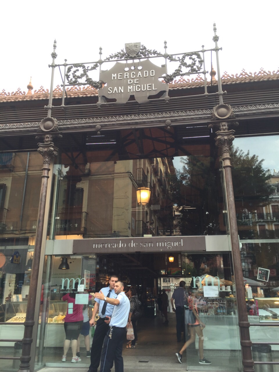 广场不大,主要是因为圣米盖尔市场的缘故,所以这里游客很多。 大家都是冲着市场去的。顺便经过,有兴趣的可以在广场上逛逛看看。 市场本身也不是很大,只是商品种类很齐全,陈列得都很好看,所以格外的诱人。 价格嘛,我觉得不便宜。就跟我们这边景点一样,不是传统国内的农贸市场。价格实惠便宜。 人家的市场环境等方面做得很好,算是一个好的综合市场,吃饭买特产都可以。 广场上也有其他的好多餐馆,沿街的酒吧也多。 开上几瓶酒,配几份tapas,在露天的座位上吃吃喝喝,谈笑风生,惬意而享受。 欧洲人喜欢晒太阳,西班牙人也是如此。而这里的阳光有很充足,明明已经晒得黝黑了,还在烈日下晒着,真的感觉不理解。 如果一张桌子,一面可以被太阳直射,一面是在树荫下。毫无疑问,他们肯定会选择在太阳下吃东西,不怕晒还不怕热呀? 广场上走一圈也就几分钟。算不上什么好的景点,顺便一看而已。