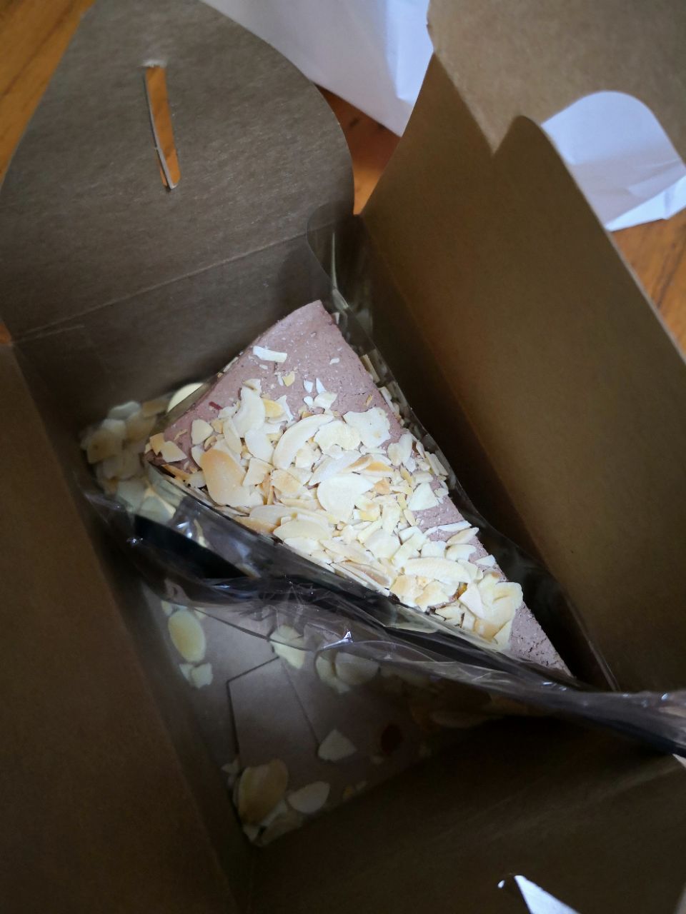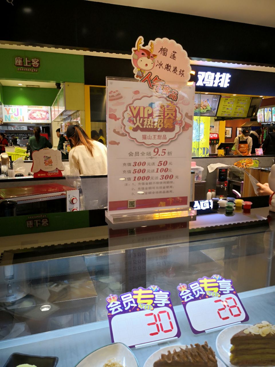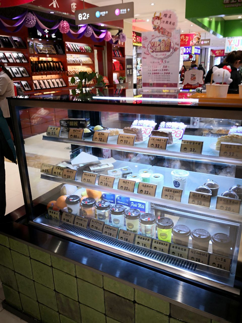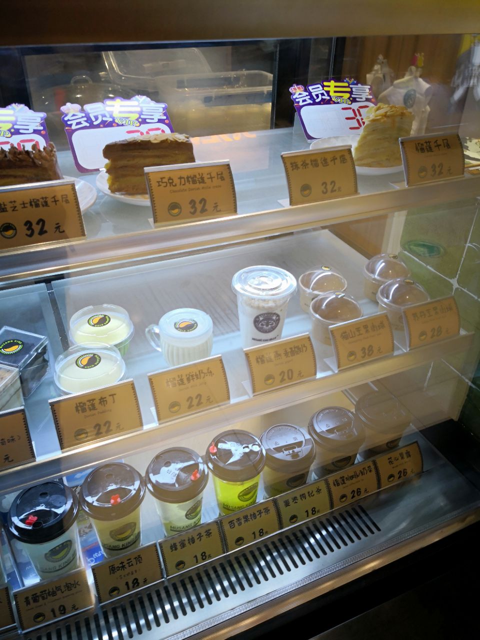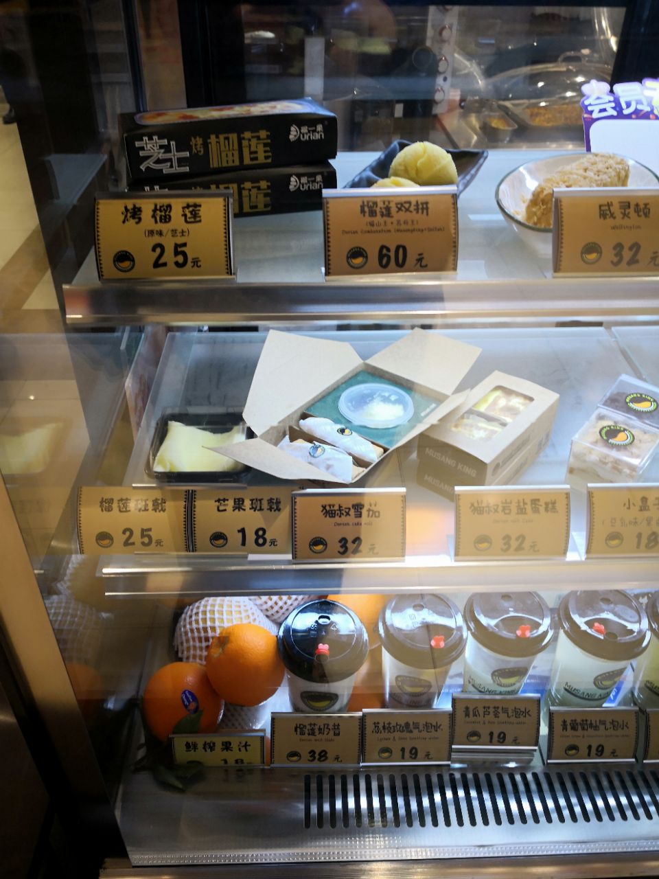 一不小心又中霸王餐,虽然位置小远点,也要完成任务吃掉它。负一层超市扶梯旁边就是,敞开式的环境,前面食品展示销售区,后面加工操作区,旁边还有几个桌椅可以坐着吃。一个小姑娘服务很不错,确认霸王餐后在纸质打印名单上细心的帮忙找,后面来了个类似负责人的男性,让服务员以后让客人自己找。挑选的千层榴莲,饮料因为没有橙汁了,换成了百香果的热饮。榴莲味道确实很正,小块的榴莲没有几口就解决了。百香果非常香,酸度正好。商品整体的品质很好,满意度90[%]。
