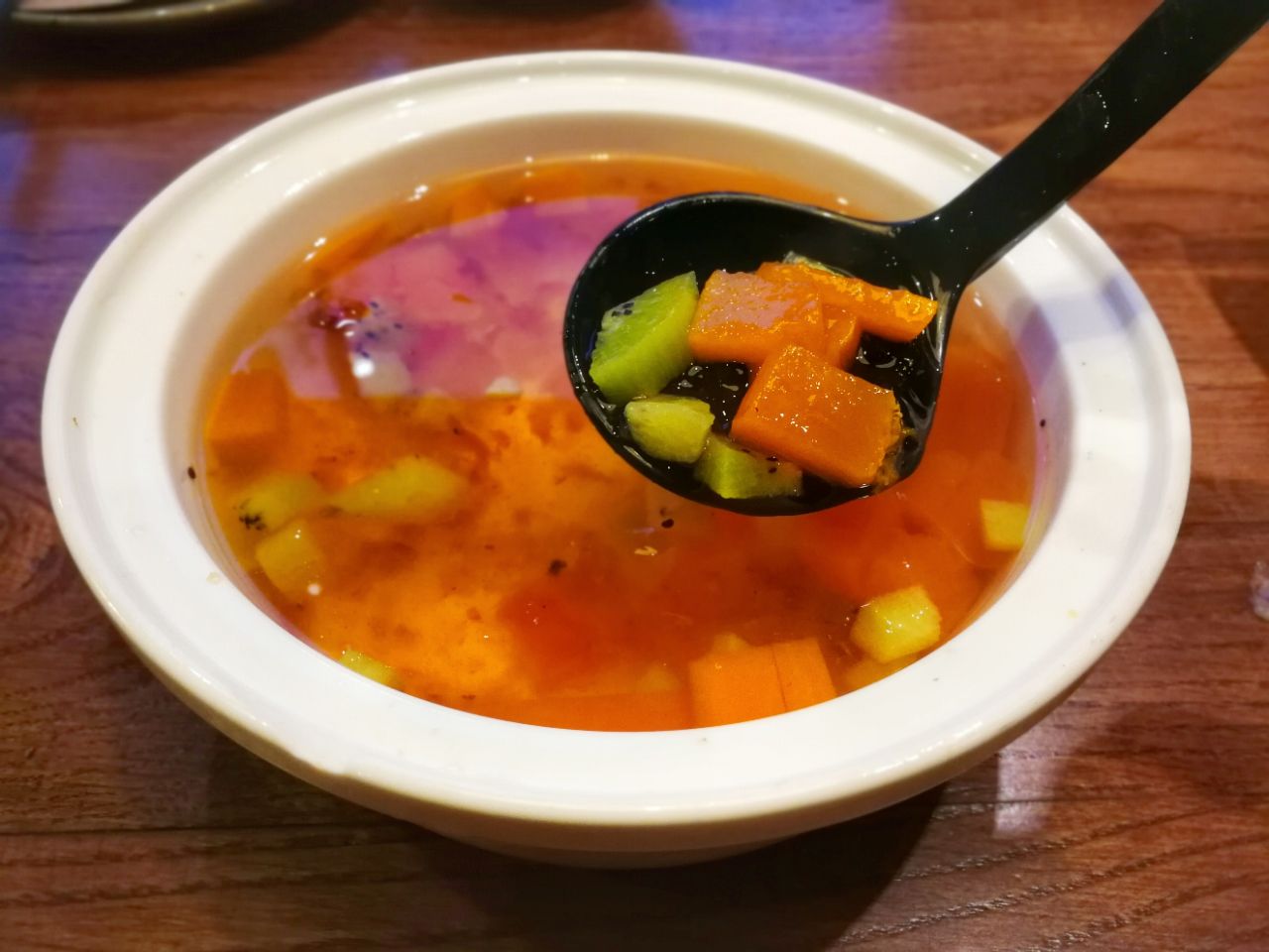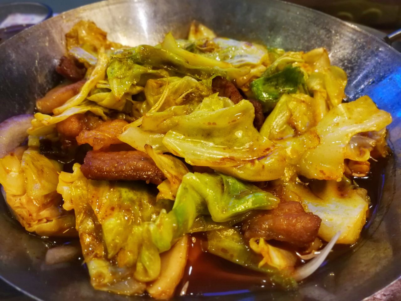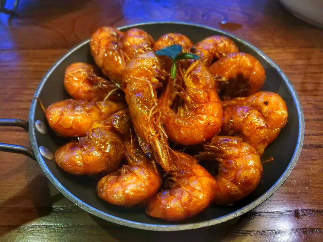 虾肚子开刀烧制,虾肉很入味。问题是,这菜居然是辣的(很辣),点菜系统里还没标注,服务员也没提醒