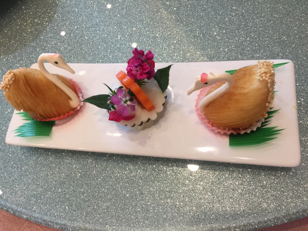 ...丹的茶点有别于别的牡丹传统的茶点,造型更加精致,特别是鹅仔榴莲和游水小黄鸭,我都不忍心吃掉它们