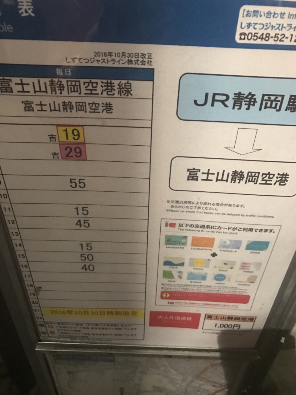 静冈机场很小,但也有直达上海的航班,从静安JR站坐班车到机场大约40分钟左右,图片有时间表可以...静冈机场很小,但也有直达上海的航班,从静安JR站坐班车到机场大约40分钟左右,图片有时间表可以给大家用,巴士可以使用西瓜卡。