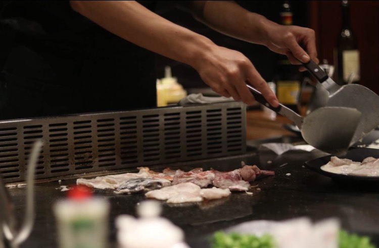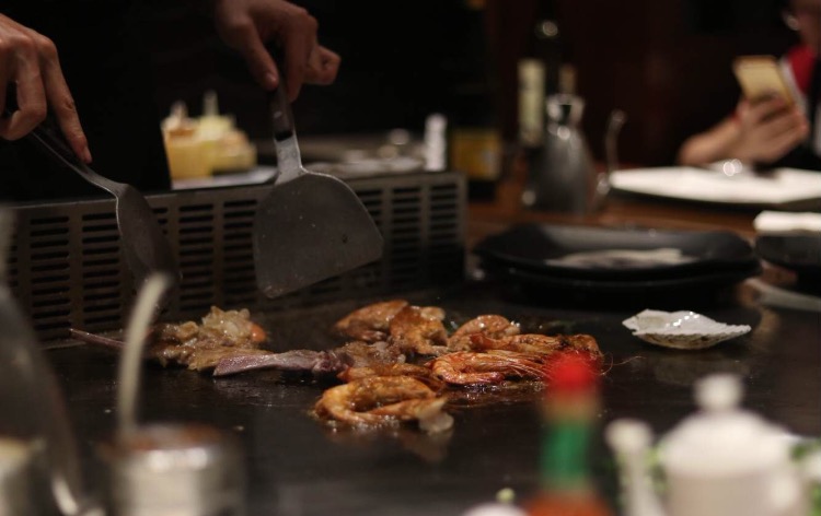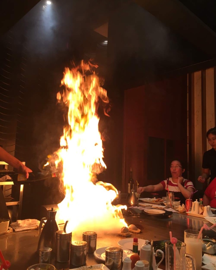 【环境】位于南京金陵饭店往珠江路方向的街边,在一家户外用品商店,常春藤旁边,临街的门面,大大的玻璃窗能看到店内的情况。座位有两种,一种是做在铁板旁边,能看到厨师制作菜品,一种是做旁边或者包间,点的菜会由服务员呈上来。一般厨师旁边的座位非常火爆,都要提前预约才能订到。 大渔火了很多年,店铺风格一直都是日式深色色调。 228一个人自助餐,食材对得起价格,每次都要饿几天大吃一顿,不过因为是铁板,烹调方式只有一种,吃到最后只感觉吃了一晚上的黑胡椒黄油、 【火焰冰淇淋】无论最后有多撑,一定要点一道火焰冰淇淋,冰淇淋球放在香蕉上,厨师在周围浇一圈油,火一点,哗的一声,火焰冲天,观赏性极强。火灼烧后的冰淇淋外层有一圈糊焦味,很有特色 【虎虾】虾子很新鲜,吃起来很过瘾,又大又好吃 【牛肉刺身】生的薄薄的牛肉做成刺身料理,一大片血红的牛肉不用蘸酱汁,直接入口,嚼不断的肉感,最后能尝到牛肉的味道,尝鲜不错。 【点餐要点】去了不要看餐单了,服务员,每一样都给我来一份,每一份都很小,而且有的时候商家会故意漏单,就是怕吃不完浪费