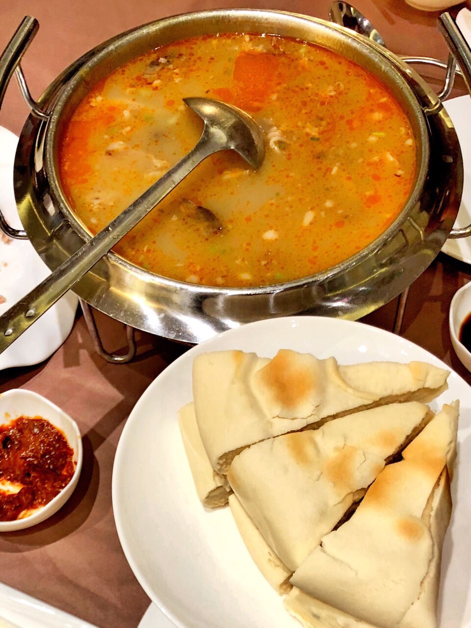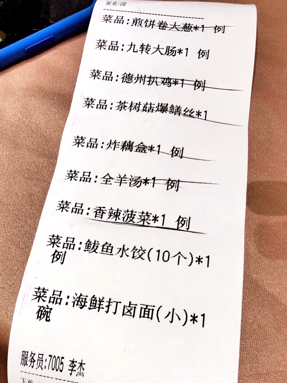 昨天爸爸生日,前几天倒是家里提前给过了,因为妈妈要出差。 于是叫上公公和我们一起去老山东吃个晚饭顺便聚聚~ 提前DP上订了位,还好订位了,人气很足哦! 环境不错,桌子和桌子空间大,还是蛮私密的。 一直挺喜欢鲁菜的,当年单位疗休养去曲阜泰安济南,觉得鲁菜可合我口味了呢~ #煎饼卷大葱# 大葱个人吃不惯,但是煎饼还挺好吃的,所以就拿饼包着其他菜了。 #九转大肠# 这个是特色必须点,大肠我也是吃不惯啊,咬了一口给老公了。因为这个菜上得比较慢,后来打包了不少- - #茶树菇爆鳝丝# 公公点的菜,他觉得有点失败,我觉得还不错,和煎饼一起吃哈! #炸藕盒# 老公说这类菜家里做不出来的,所以在外要多尝尝,外面的面粉厚度刚刚好~ #全羊汤# 三个男人狂喝了,喝得开心来,不吃羊肉的我就吃吃附送的饼吧,饼有馕的感觉。三个男人表示汤不错~ #香辣菠菜# 羊肉和菠菜绝配哦! #鲜鲅鱼水饺# 特色水饺,刚吃一口觉得有点腥气,但是多吃几口回味无穷,软软的口感,老少咸宜。 #海鲜打卤面# 生日当然要点面啦,小份的,料挺足的! 离家近,以后还会常来哦!支付宝招行点评买单都有优惠~