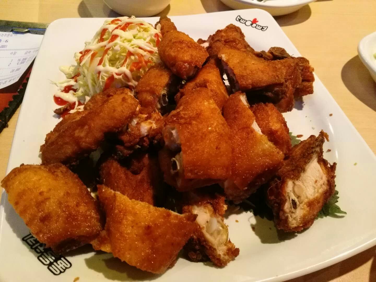 这家店口味没的说,超赞!两个人一盘子炸鸡,外加酸萝卜,再要点其他主食,吃的非常满意这家店口味没的说,超赞! 服务生也很麻利,虽然客人很多,还不用久等。两个人一盘子炸鸡,外加酸萝卜,再要点其他主食,吃的非常满意