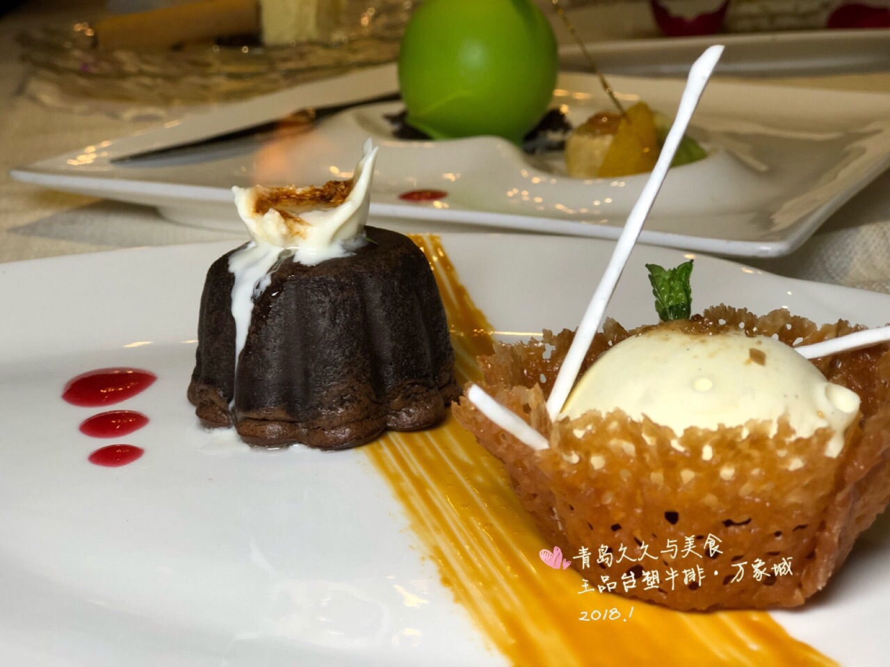 #青岛美食# #王品台塑牛排# “一头牛仅供6客”的台塑牛排, 终于来拔草了。 人多,定的包间。 定的每人台塑牛排套餐。 从起泡酒、 餐前面包、 沙拉、 汤、牛排、甜品、饮品, 一道一道依依吃下来之后。 真是很撑。 每道菜的颜值都很高, 甜品提拉米苏是现场制作。 牛排服务员会贴心的帮忙切开, 鹅肝入口即化。