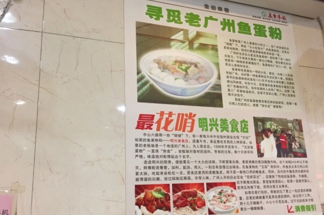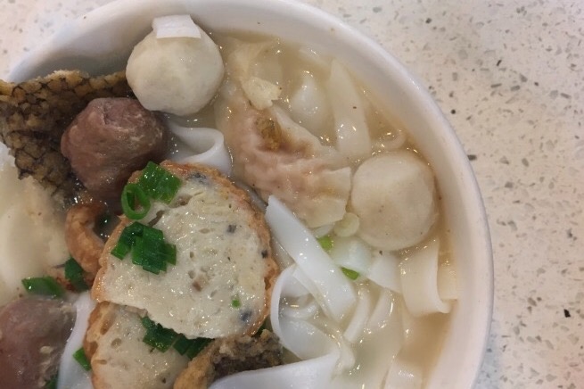 住在老城区,不需要太刻意,随便都能找到好吃的。出门路过这家店索性就图个新鲜,没想到还小有名气。 大广州的吃的和福建还是有很大不同的。比如说这个招牌的五彩鱼蛋面对我来说就是个新鲜事。 汤头是牛奶色的,说是五彩,其实是有五种配料。炸的脆脆的鱼皮。牛肉丸,鱼丸,鱼卷和福建这边称为扁食的东西。撒上一把葱花,真是鲜美~~