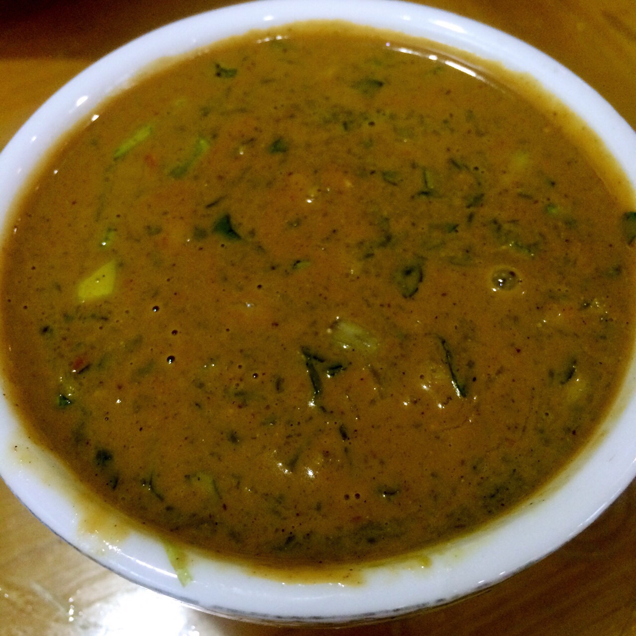 下雨天跟会计和翻译来吃饭 点了好几样店里特色 鲜韭花酱挺好 芥辣丝是免费不限量的 也挺好 王哥庄大田菠菜一致好评 这才是红嘴绿鹦哥的好菠菜 店里酱料比较简单 寥寥几种 除了一人一碗花生酱是从厨房端出来发到手上的 其他都在酱料区 我不爱花生酱 如果是搭配了芝麻酱或许会好很多 为了多吃几样特色肉 全都要的小份儿 高钙肉和太阳卷儿一致好评 点了碗现泼油辣子 香辣得很 她俩嫌羊尾油纯脂肪 每人勉强吃了一小口 剩下的都我吃了 店里供白水 我自带了小青柑泡来喝 多亏从头到尾喝了小青柑 有很好的清肠解腻的作用 因为这顿的油水实在是太大 当时吃完不到10分钟就进了店门外的洗手间排了大半出去 也算是舒坦 当晚没吃饭 在朋友店里喝了一下午的马黛茶继续清肠排油 又是一顿上吐下泻 把在这里吃的全排出来了 估计就是花生酱和羊尾油把我拿下了 不过对老板娘和为我们服务的小姑娘充满好感 服务没话说 手动点赞