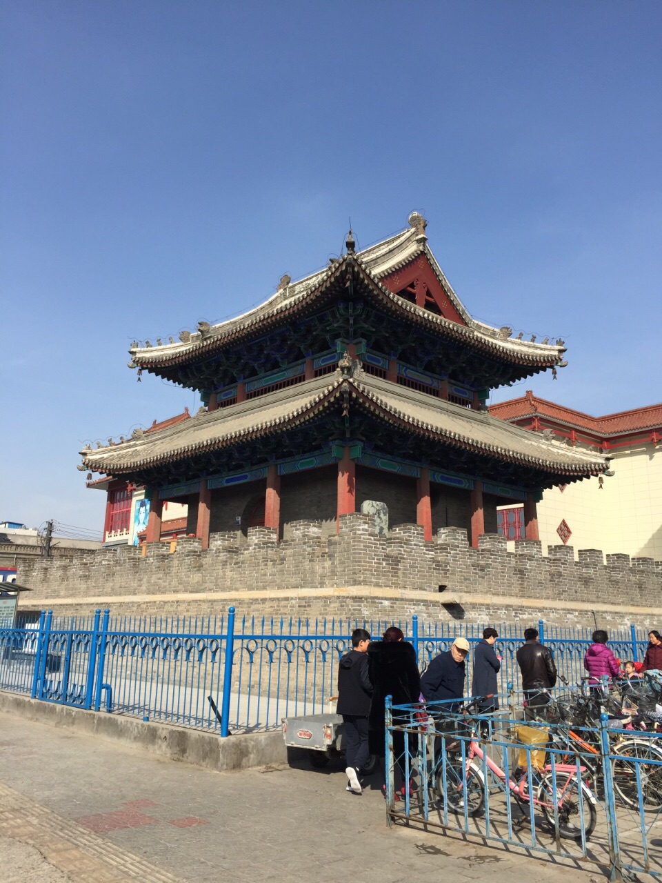 很喜欢鸣霜楼这个名字。一座钟楼因为这个名字,感觉显得很有文化。 钟楼坐落在繁华的裕华大街旁边,因为后面有商场,所以人来人往,很热闹。 钟楼整体高度不高,甚至可以说,建钟楼的城台还比较矮,感觉像个台子上面建的钟楼。有点儿像个大凉亭的感觉。不过,钟楼本身建筑却很精致,玲珑秀气,并不因为比较矮而简陋。建筑上的雕梁画栋,飞檐斗拱,一样都不少。 在人少安静的时候看,可能更有感觉。