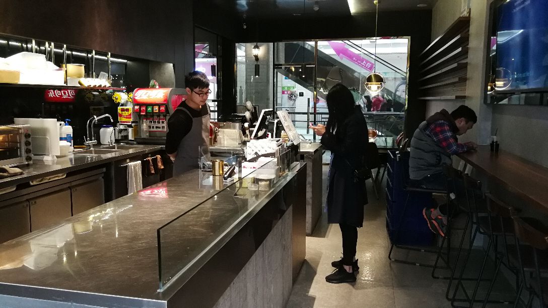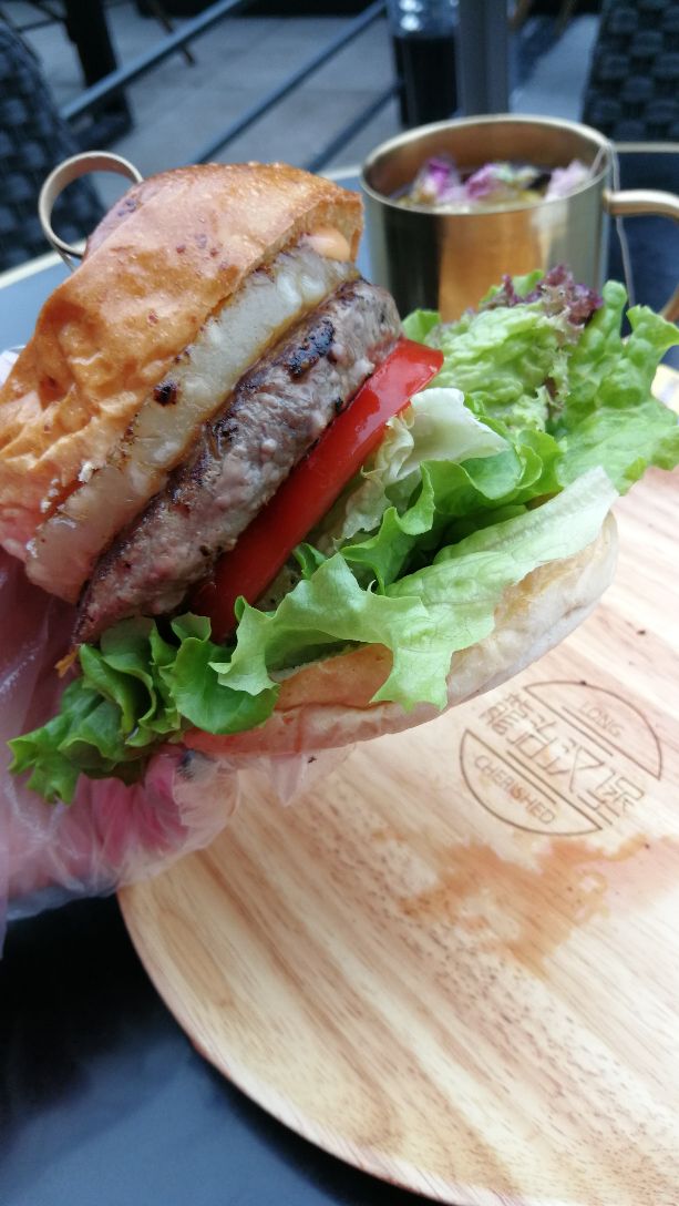 龙治开来瑞景了,在星巴克旁边,非常好找。不大的店面,可以看到开放式的操作,风不大的时候可以坐门口,几款牛肉汉堡今天点的是牛泰极,牛肉加菠萝加沙拉酱,味道不错,就是吃的时候有酱汁流出来比较适合跟死党来吧,再来杯红茶,一份午餐搞定了,完美