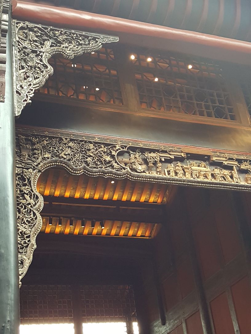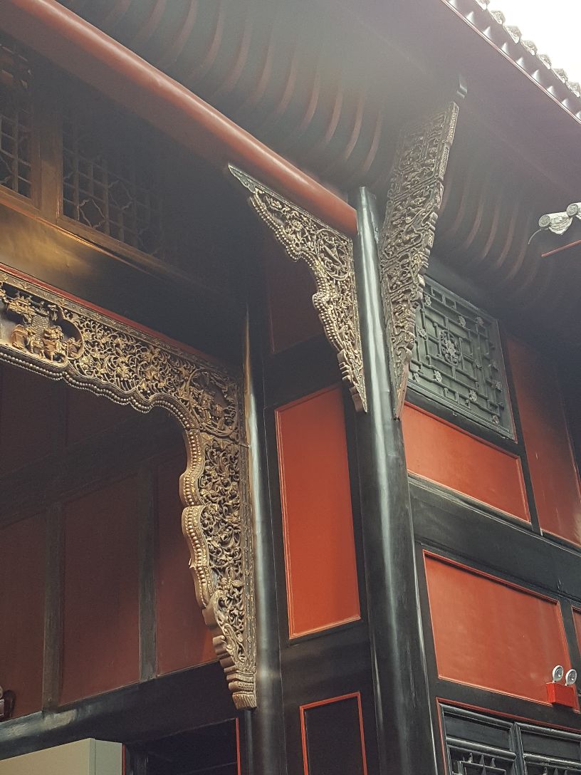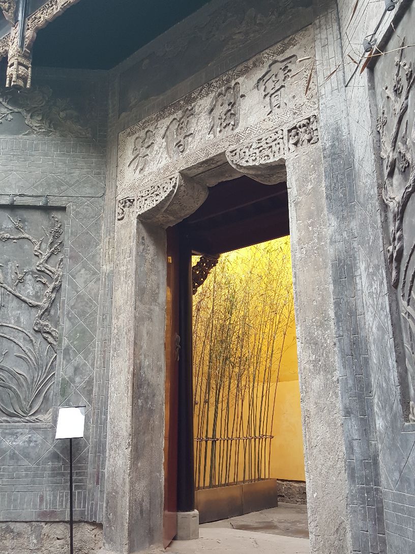 【谢家大院】是上世纪初重庆赫赫有名、富甲一方的谢字号绸庄老板的私人公馆,具有典型的清末建筑风格,采用两进式、小瓦坡屋顶,进门是天井、过厅,后院是一个由天井围成的四合院,老房东西两侧,原还有天井偏房,翻修后未保留,后院照壁上凸着一朵象征富贵的浮雕花,.廊檐、窗户上的雕花,尽显昔日的大家风范。大门为八字朝门,门楣上的匾额“宝树传芳”4个字斑驳但尚能辨认。文管部门相关人士推测,这4个字的含义,或是谢艺诚买下大院后,有借此光耀门庭之意。相传1600多年前,谢安、谢石打赢淝水之战保住东晋王朝,皇帝见到谢家门前的大树说:此乃谢氏之宝树。唐代王勃《滕王阁序》也有典故:非谢家之宝树,接孟氏之芳邻。于是后来,有财力的谢姓人家便将“宝树传芳”刻于大门门楣,谢家堂号也多叫“宝树堂”。站在谢家大院大门外往里望,院内层次分明,给人庭院深深之感。进入二门,门廊前是石板天井,天井内的石缸雕刻精美,盛满水,波光粼粼。在传统大型木质建筑里,盛水的石缸还具有消防池作用。整个谢家大院分为前堂、后堂,前堂迎客、议事,后堂则是休息的地方。两侧是当作卧室的厢楼,楼廊四隅有木梯上下。当年谢艺诚家人住楼上,丫环、佣人等住楼下。屋内朱红、墨黑交错,富贵而大气。飞檐上雕刻着精美龙头鱼身和葡萄雕像,中堂挂落图案上的人物栩栩如生,木刻图案上的诗文也看得清楚,随处可见的雕花构建更是让人目不暇接。