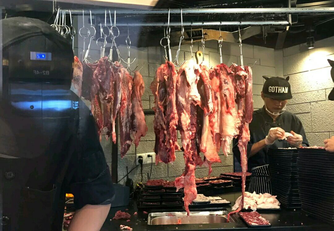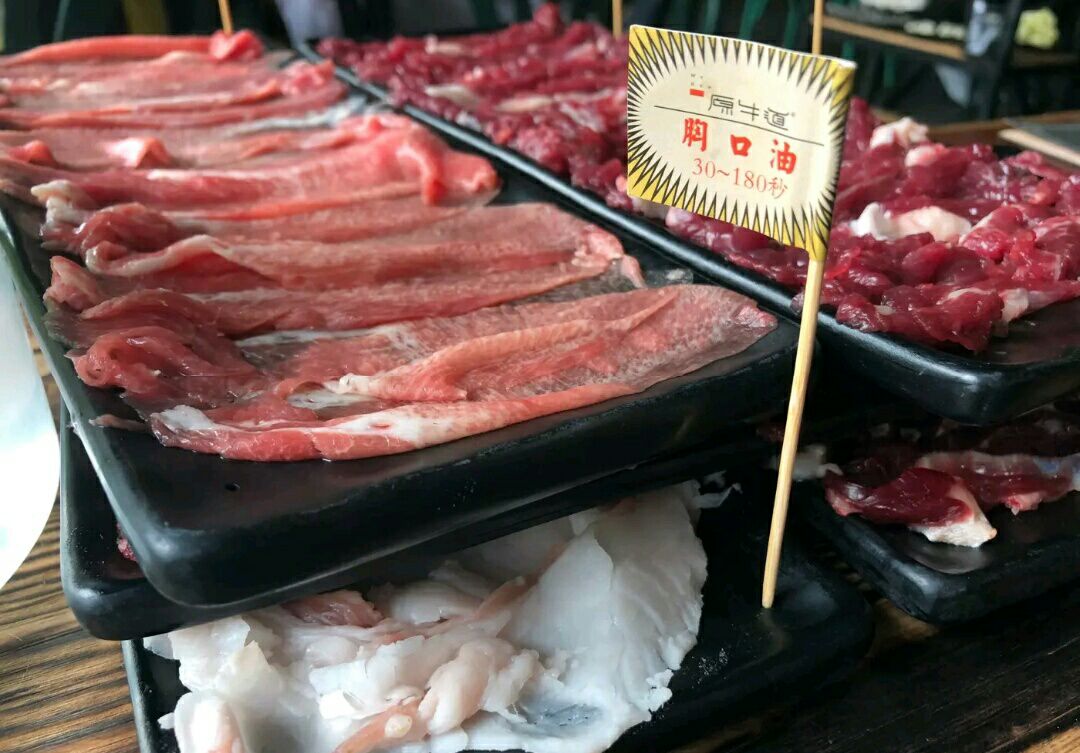 上周五来聚餐,离地铁口挺近。室内环境也还不错,有点酒吧的感觉,服务员特别提醒了摆盘的牛肉分量不多,肉的话还是喜欢吊龙,牛杂分量也很够,棒棒的,不过沙茶酱有点过甜了,吃完之后会很腻,酱料用酱油+辣椒会比较好,稞条也蛮好吃的,但是整体口感还是比不太上正宗的牛肉火锅店。