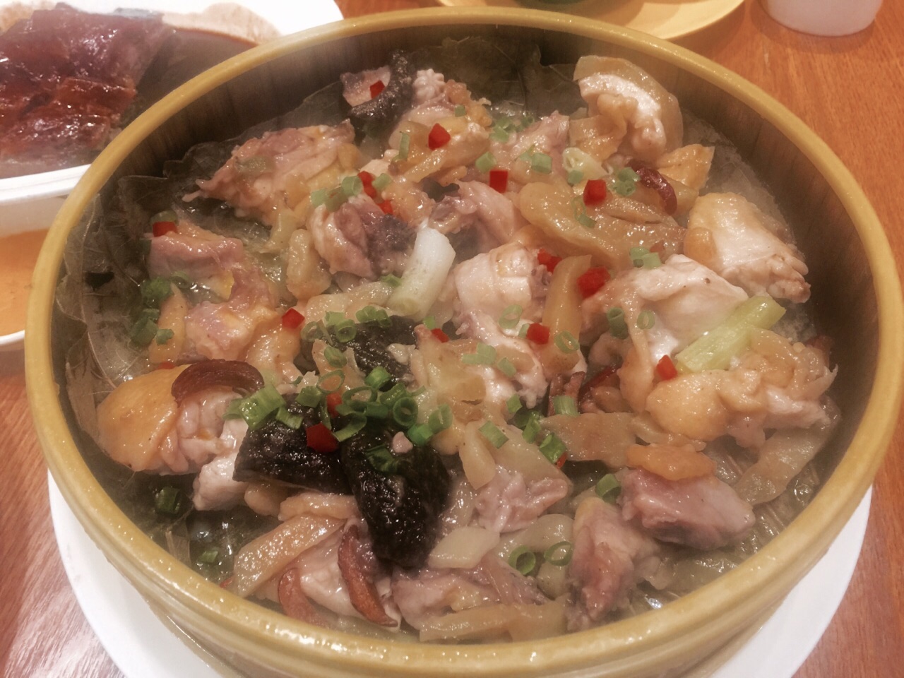 文兴的鲜果咕咾肉说实话真的做的相当不错,脆脆的外皮包裹着嫩嫩的梅花肉,外脆里嫩口感相当好,酱汁没有过度的甜和酸,感觉一点不肥腻,加上草莓味道非常棒!话梅猪手的用材也是相当不错,没有猪脚的腥臊味道,而且用了话梅略带酸甜味正好把肥腻去除,软糯适中,连我这个平时不吃猪手的人都忍不住吃了一块。豆豉蒸白鳝也是非常好吃豆豉酱里面加了陈皮碎口感清香,赞!烧鹅也不错,就是直接浇了甜酱感觉稍微有点咸,最后不要浇上去,让食客自己感觉喜好程度再沾酱更加好一点。
