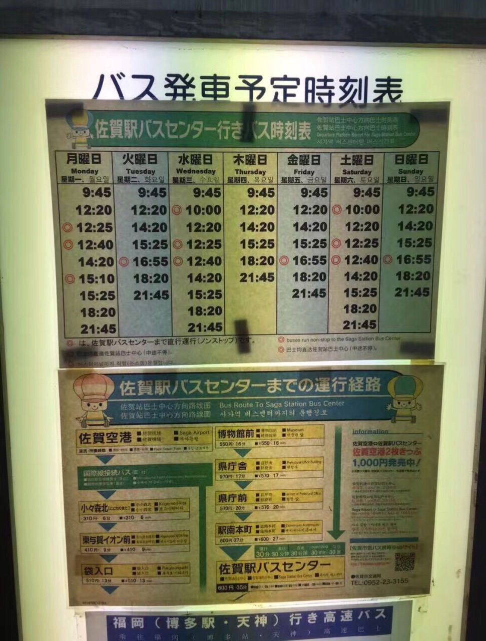 佐贺机场-佐贺JR/巴士站攻略,附上图片时刻表,单程600,往返1000円。图1⃣️为机场-车站时刻