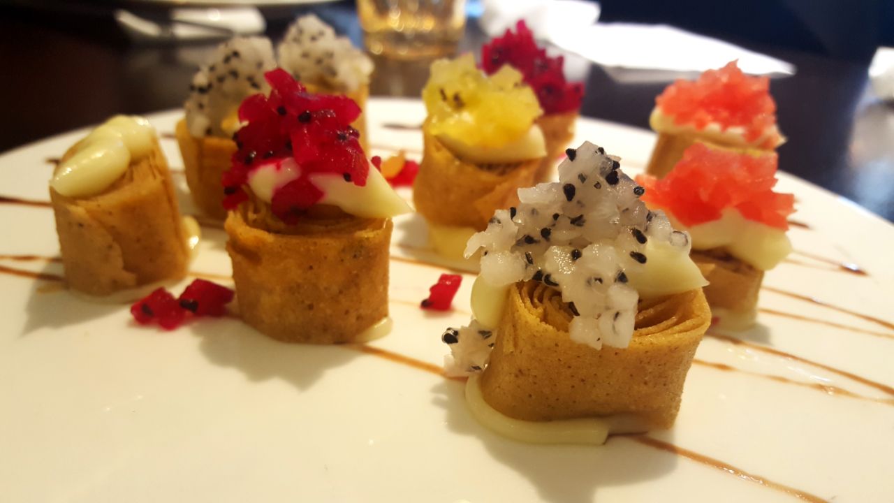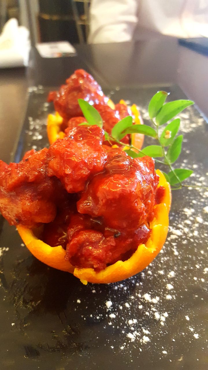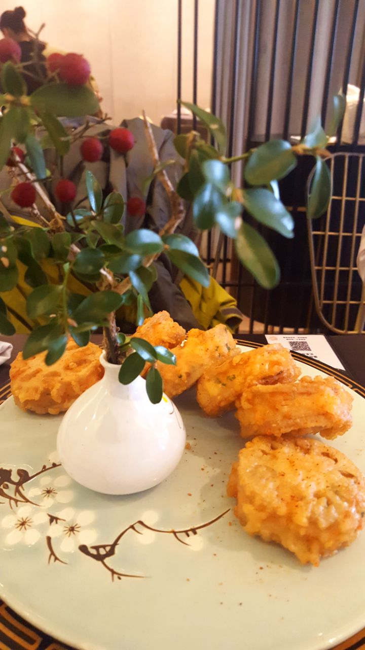 十一點半不到到的店,沒想到位置已經不多了…菜單封面上寫的精緻上海菜…點了大概7個菜,3個人有點多沒吃完,只能打包…上菜很快…他家擺拍不錯…量也是不少的…火焰牛蛙,裡面是薯條和炸過的牛蛙,薯條比較辣,牛蛙還好…外面酥脆裡面嫩嫩的…含苞欲放,名字很美…可以說事實是一道甜品,白巧克力球裡面牛奶小方,配上淋上的巧克力醬牛油果油條蝦,和含苞欲放有點異曲同工…只是外面是糖做的,淋上芒果醬…外殼比較堅硬…服務員敲了半天才敲碎甜鹹的配搭,還不錯…藕餅,6個一份,夾的蝦肉,最裡面有芝士,可以拉絲…要小心燙口…蝦肉裡有+橙皮丁,吃上去不會膩