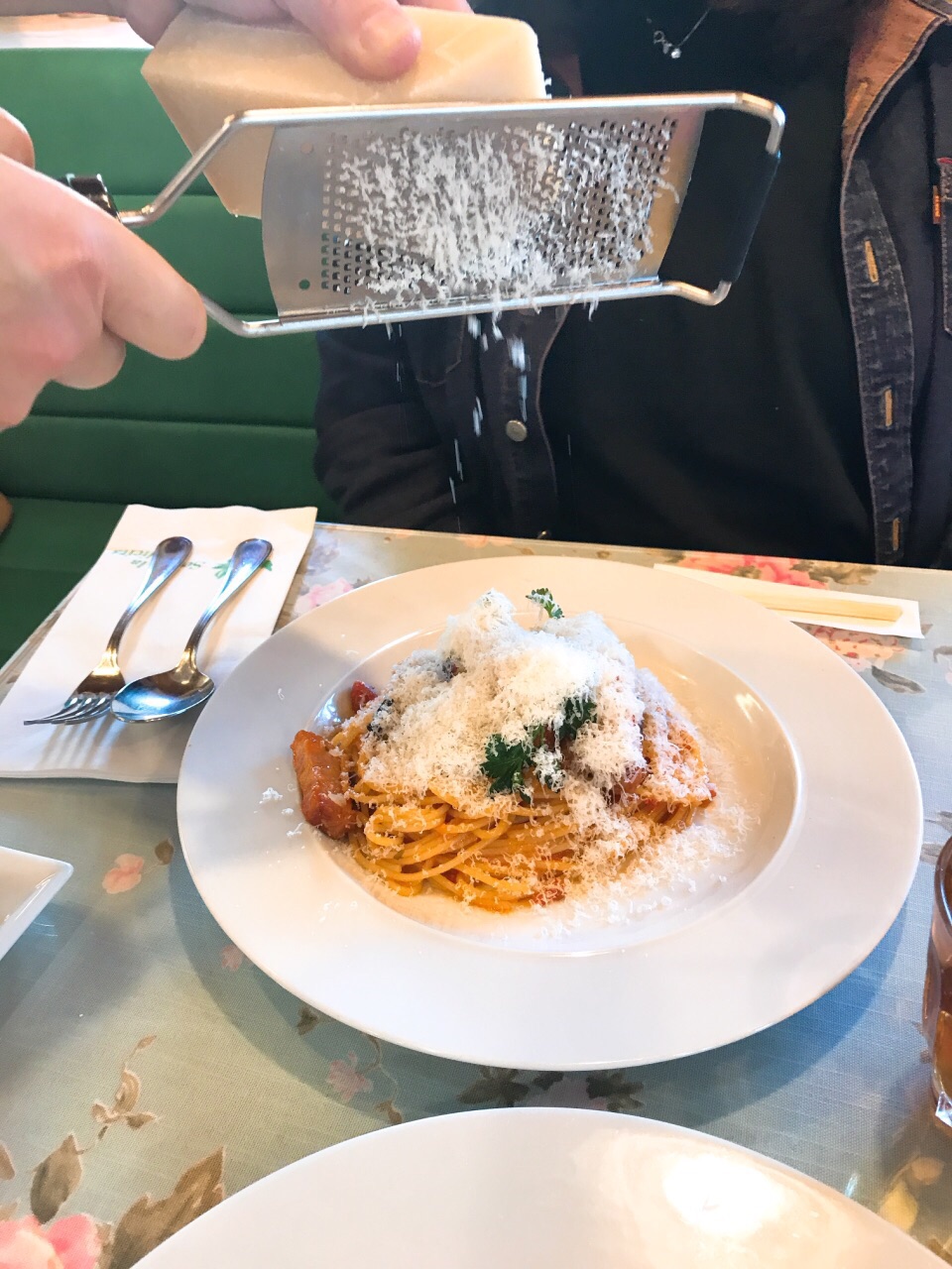 中午开店前就已经是长长的排队等候,中午的午餐饮料和前菜都是自助,种类丰富,晚餐会有酒类可以饮用意大利面和披萨的美味餐饮店,强烈推荐哦!中午开店前就已经是长长的排队等候,中午的午餐饮料和前菜都是自助,种类丰富,晚餐会有酒类可以饮用。