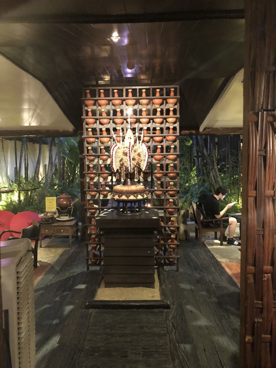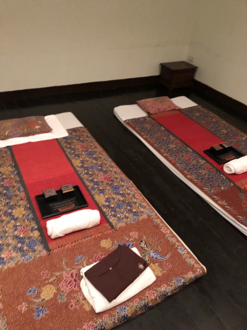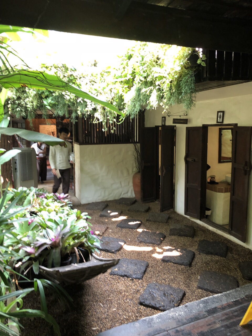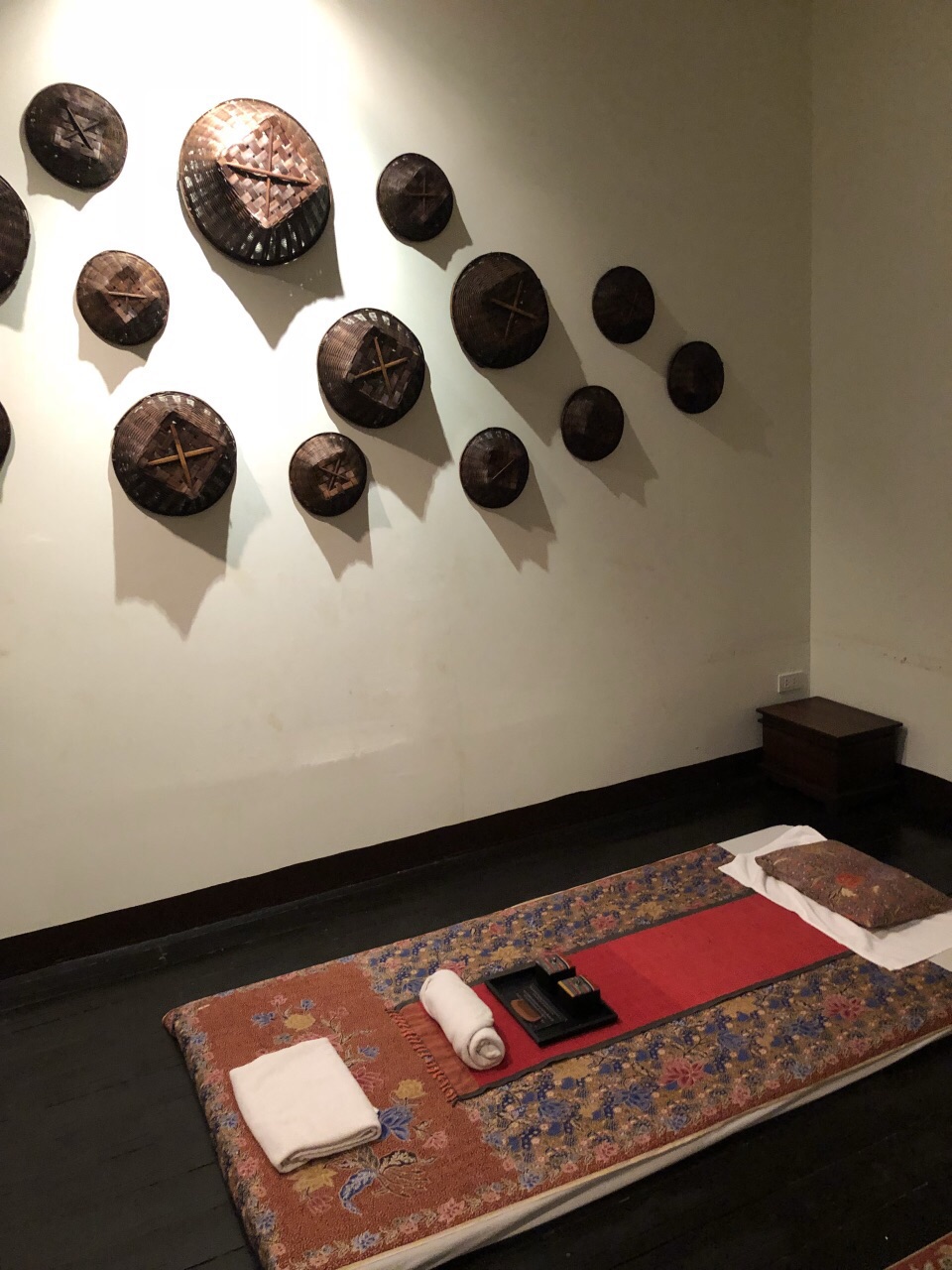 一个人闲逛发现的,后来知道是拍泰囧的地方就进去看了下,环境不错,人比较多,最好提前预定,网上订的话有车接送,我离得比较近就自己定了第二天上午的。十点开始,景色没有晚上的好看,服务也没得说,全程很安静,放松。做之前给冰洛神茶(像酸梅汤),做完喝热姜茶,酥饼,总之我觉得不错,对了我做的是1小时传统泰式700株,值得体验下
