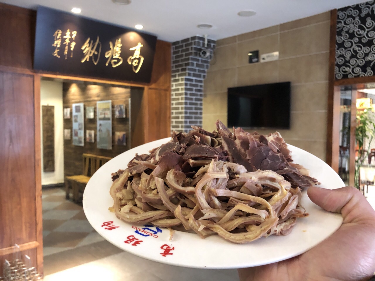 高玛纳的驴肉板肠!“板"意为"整块",板肠就是完整的大肠。在北京,想吃到好的驴肉火烧,总也还有些,但好板肠就甚为难得了,个人觉得好板肠甚至比驴肉更有吸引力。保定府与河间府的驴肉火烧各胜擅场,板肠也是各有千秋,高玛纳是河间派的掌门店