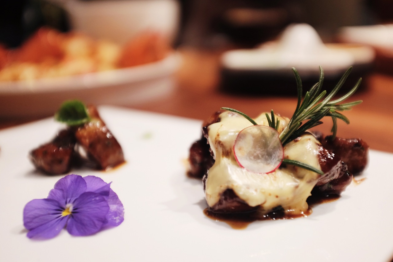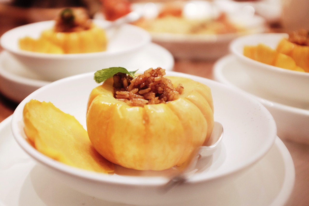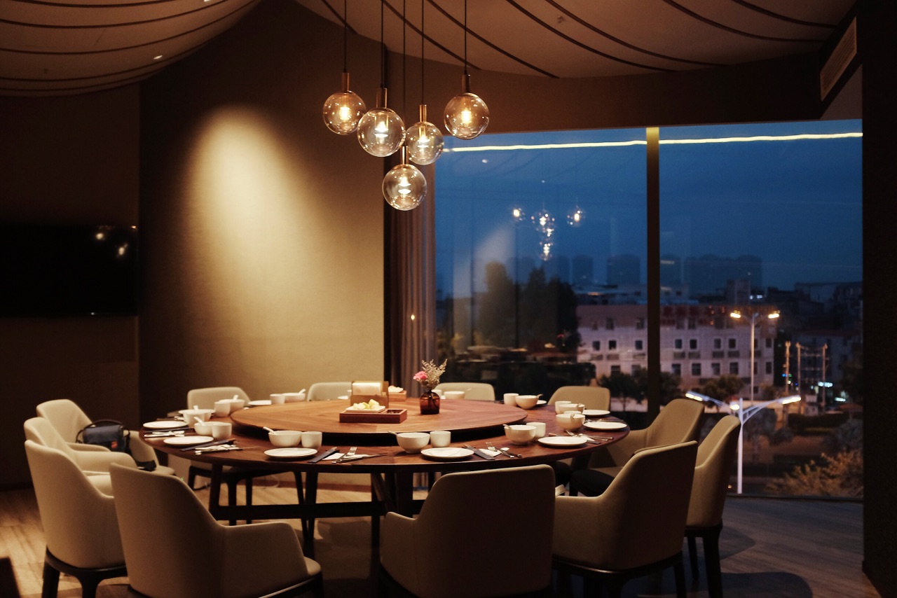 今年新开的美岁城,公交车坐到金融中心站下车就能看到,边上依次是朗豪酒店和万达。大致是因为新开的原因,很多商家还没装修好,虽然是周末,但是商场里还是略显冷清。搭扶梯上三楼很容易就能找到这家店了。出人意料的是,这家店的上座率很高,可以说是基本上满席的状态,和商场形成了有趣的对比。 进门迎宾就会热情的迎上来引领座位并且对餐厅做一个简单的介绍。遇见的每一位服务人员都素质很高,彬彬有礼。 整体装修风格高雅,简约,走的暗色调。很舒服。 做的是精致创意粤菜,所以菜品也是出人意料的可人。 首先端上来的红酒鹅肝佐干提薄荷酱就让人眼前一亮,拔丝的麦芽糖缠绕出一个小圆圈,罩着鹅肝。上面装饰着可食用的蝴蝶糖纸、鹅肝入口微凉,配着薄荷酱,非常特殊的体验。很喜欢。 广式爽口四位,好像这家店很喜欢用薄荷酱哦,薄荷酱配牛肉,吃过得都说好,哪怕是萝卜干和花生米调味也是非常棒了。 港式波龙焗伊面,很喜欢的一道菜,面条很爽滑,慢慢的吸收了焗波龙的汤汁,逐渐变得有味。即使放久了也不会软踏踏的失去口感,我真的是一个人光面条就吃了3碗了吧,波龙的味道就更好了,肉质紧实Q弹,能够感受的到食材的鲜美,强烈推荐这道菜。 黑猪肉芒果烧,非常有层次感的一道菜,最上层覆盖的是奶香浓郁的芝士,然后芒果,接着是黑猪肉。个人感觉十分有创意。摆盘也是精致美好。 黑蒜螺头炖排骨,黑蒜汤一直很喜欢喝,他们家的不油腻,汤汁清亮确回味无穷,很喜欢。 芝士焗薄荷肋眼皇,非常非常有味道的菜,调味很好,而且芝士与薄荷酱的搭配真的很奇妙啊。 太阳果辣味焖饭,超级可爱的一道菜哦,或者说算是主食呢?可爱的小南瓜挖空,装上焖饭,把甜甜的南瓜挖下来拌着米饭吃,光是这样吃,就已经觉得又有趣又满足了~