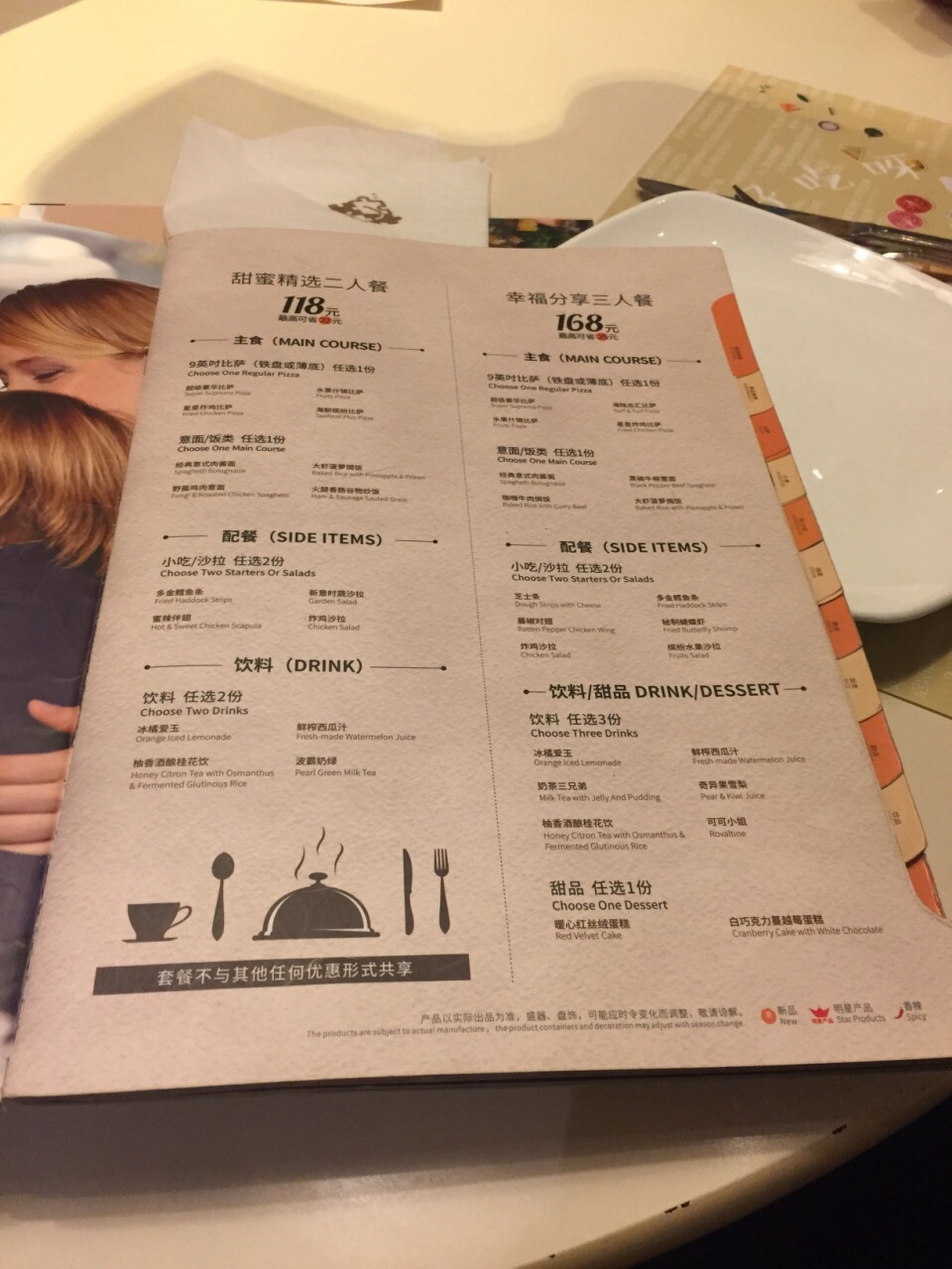 ...来想点菜单上的3人套餐,看着很划算,但是服务员说套餐里的蛋糕没有,也不允许我们换等价的其他产品