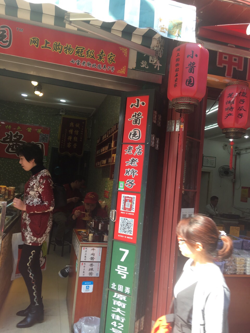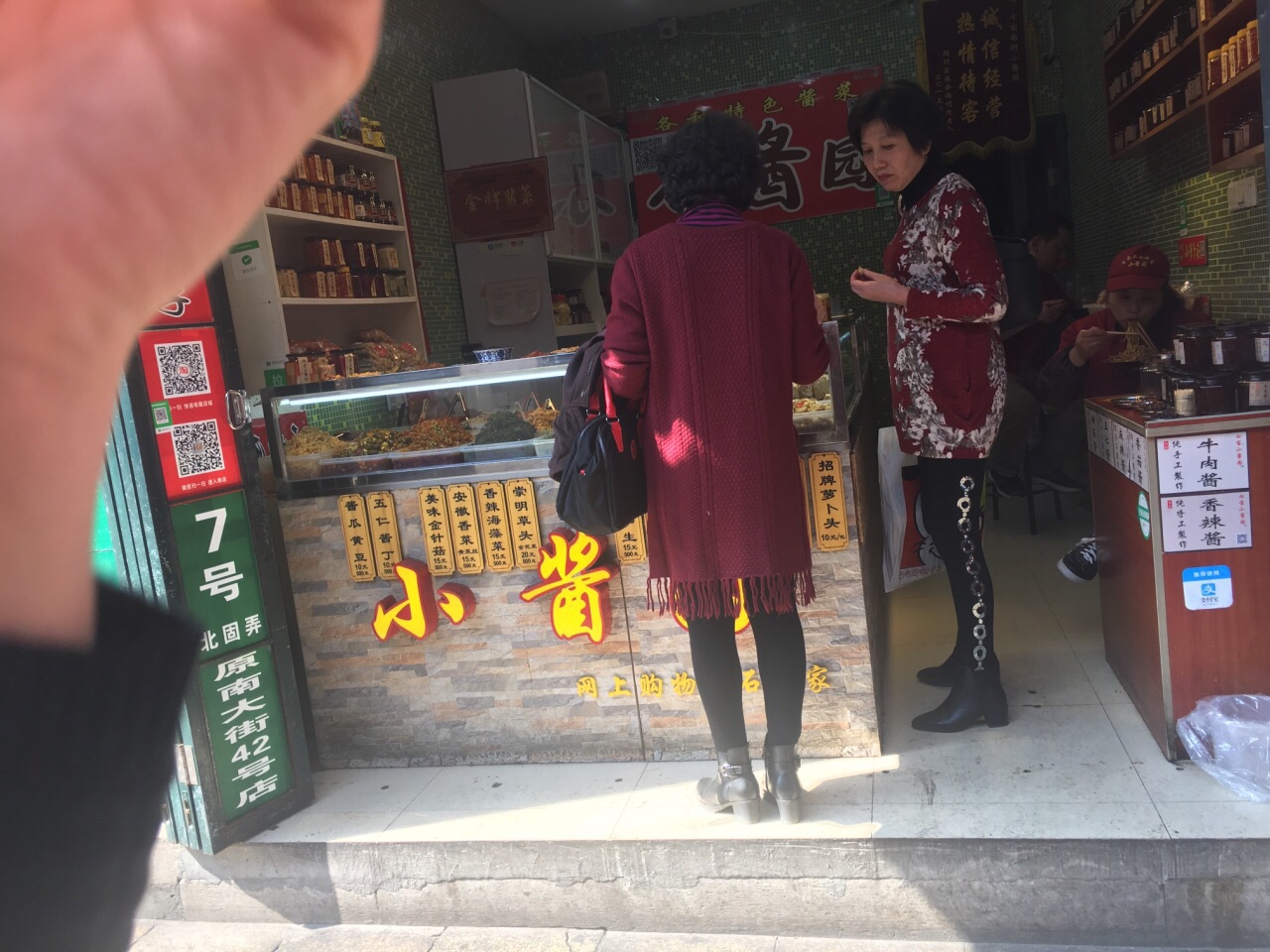 七宝老街走走逛逛,一路吃了刀鱼馄饨、蟹粉小笼、老上海葱油饼和汤圆,肚子实在撑的不行,于是走走消消食。 一路上看到好多卖酱菜的店,老妈憋不住了,买了一罐糖蒜,当晚回家就开吃了,酸酸甜甜的,基本吃不出大蒜味,味道还不错