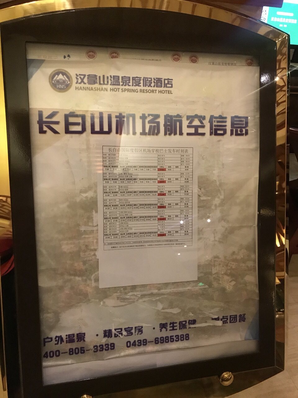 在长白山万达度假景区内买的是套票 住酒店里面的一些周边娱乐都可以一站式玩耍 所以温泉门票也是其中之一 办好check in 换好盘子就可以登记去泡温泉 不过maybe今年这边的旅游业并不好 12月份开始更衣箱另外收费了10元/个 里面有室内温泉和室外温泉 不过第一次体验了把下雪天的户外温泉 泡在池子里不觉得冷 但是上来的那一刻是真的挺冷的 里面吃饭的话 价格还是比较合理的 还放了两个内部消费的价目表可参考 另有去机场车辆的时刻表