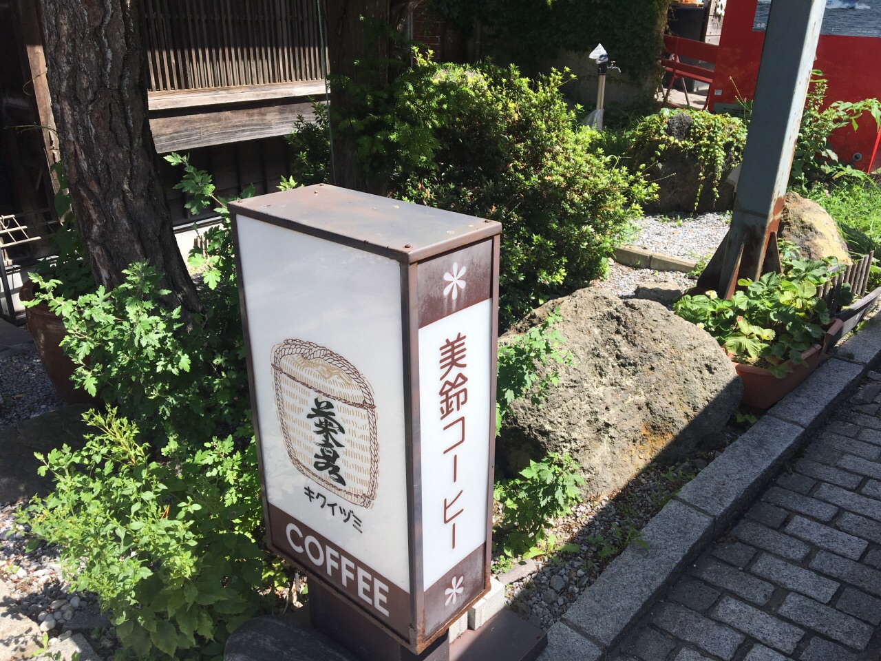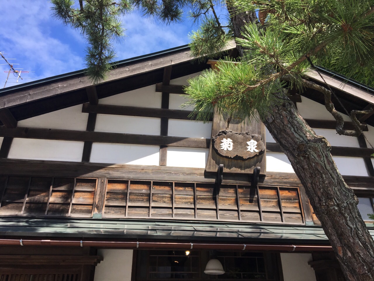 菊泉是一栋非常日式化的木造民居,很有江户时代的感觉,门前栽着矮松。现如今,这里是品茶纳凉休息的好地方