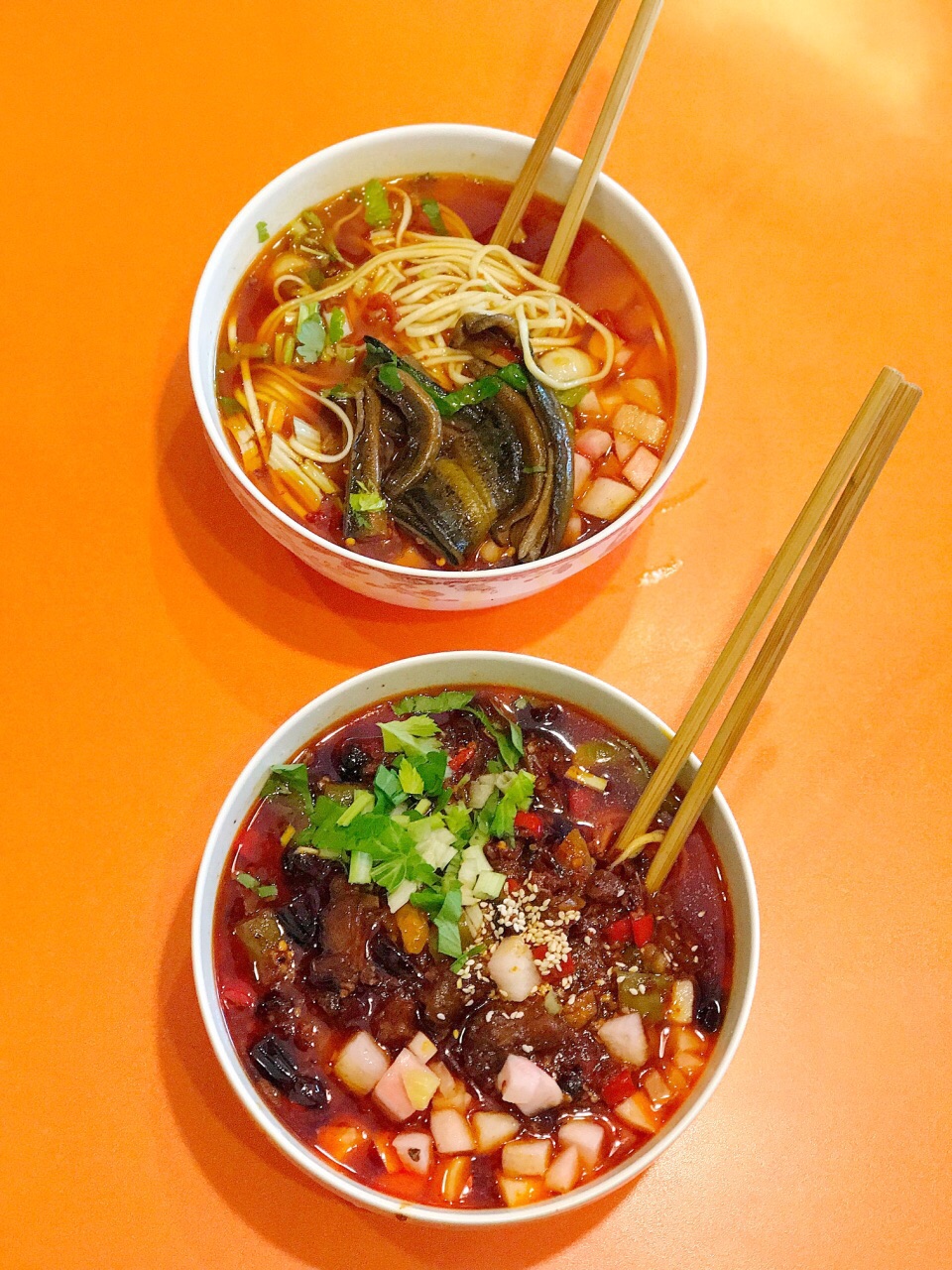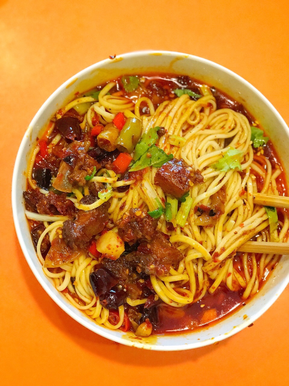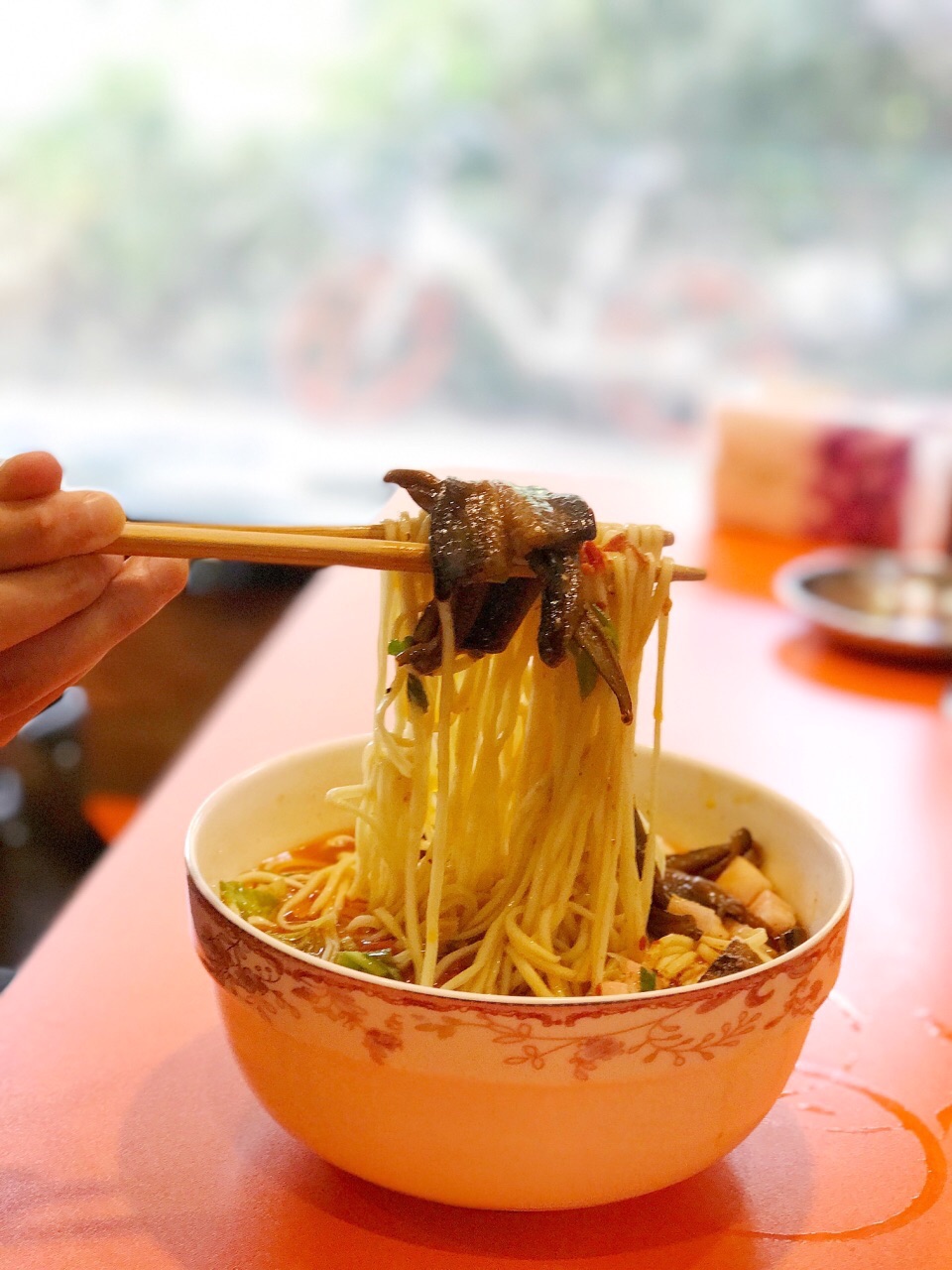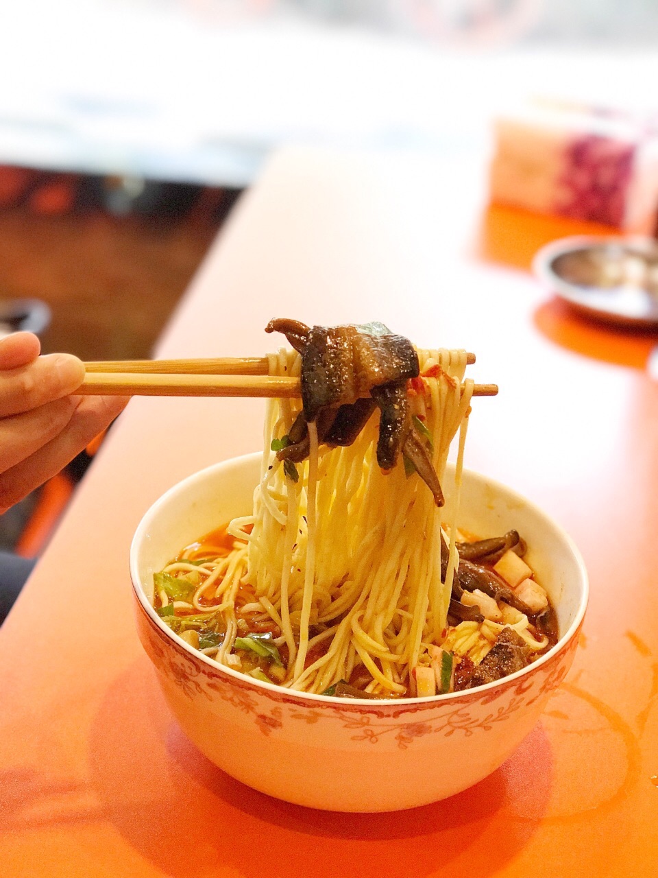 总评: 很多人给我说,他们家只是贵,味道不怎样,生意还好。 哈哈!好奇心嘛。所以我还是去了。 咦~~!怎么我觉得还不错呢。鳝鱼面我只尝了两口,觉得清淡了。 多椒兔子面。哇!好辣好爽好过瘾哦!吃完整个人都热腾了。爽! 价格贵,这点,我觉得还好吧。毕竟那么大碗,况且绍子还是足。 难得一碗面吃得我这么畅快!我表示满意! 评分:82分 性价比:❤❤❤ 每一个人的口味都是有差异的,所以啊,即便是那么多人说他们店味道不怎样,但是价格贵,不会再去第二趟。 但是人家店里生意还是不错啊,饭点的时候,桌无缺席。 那么,个人口味,个人评价,仅供参考哦! 【多椒兔子面】28元 一上桌,那种复合型的辛辣香味扑面而来,各种辣椒混合融入这一碗兔子面之中。 兔肉煸得干香入味,麻麻辣辣,是还没什么骨头的尽肉哦。 面汤基本上是红油,所以啊油比较汪实,辣刺激了味蕾,反而 不会觉得油腻。 第一次吃面吃得我额头微微冒汗的,这寒冬腊月吃得我全身都暖了。 现在想来都不禁吞了下口水。 【鳝鱼面】42元 相对于兔子面的调味这个太温和了,微微一点点的丝丝泡椒酸辣而已。 店里的面条用得不太好,虽然是小亚喜欢的粗面,但是口感不是带着嚼劲,而是导哥说的脆硬。只能说不软耙而已。 鳝段还是不算少,我觉得够吃了,或许相对来说价格是偏高了一点点。 调味比较妙的地方是加了很多的泡萝卜,一点点的酸爽很开胃,可惜还是不足以让我吃完这么一大碗的面条。 建议啊,整个小碗嘛。任何东西多了都是负担,要少少的留一些念想,才是最美好的。 有说店老板很傲骄,态度不是很好,但是我这次是一位男服务员接待的,我觉得没什么问题哈,正常范畴内。