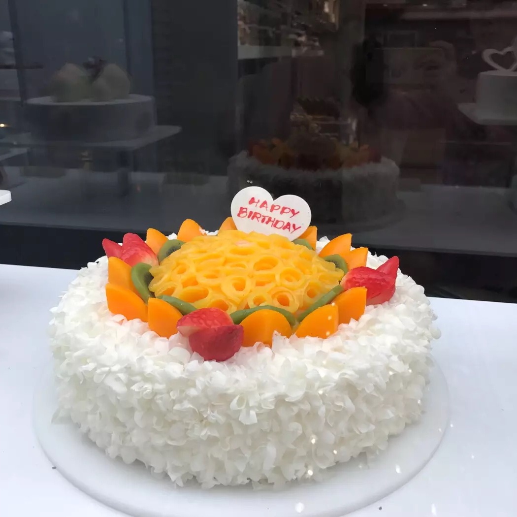 上周六爷爷生日,小亚我负责订蛋糕。 其实给老人家订蛋糕啊还是比较不容易,因为款式要稍微老气点,看上去要喜气点,造型不能太奇特太标新立异了,反正就是传统点比较好。 一般来说寿桃这些都是经典款式,所以啊,那些我平日里喜欢的商家是肯定不合适的。 只能找好利来这种老牌的店,他们在款式就比较接地气。 去年爷爷过生日在他们家订了一个寿桃的生日蛋糕,那个寿桃竟然是一个塑料的,中看不中吃。 所以啊,今年不敢订寿桃款了,选来选去选了【欢聚】。 这个看起来款式比较简单大气。虽然没什么新意,但是老人嘛,不用那么多新意。 夹馅儿可以自选,原本想选樱桃果冻夹心,但是考虑到会不会比较甜腻,所以改了玫瑰芝士慕斯。 蛋糕10寸的是289元。当天准时送达。 然后当天顺便买了一个面包当第二天的早餐 -【红桃核桃卷】22元。 很长一条的一个面包,面包里面的红糖很讨喜,核桃颗粒很香,只是如果核桃再丰富点就更好了。
