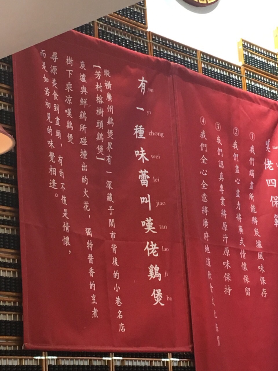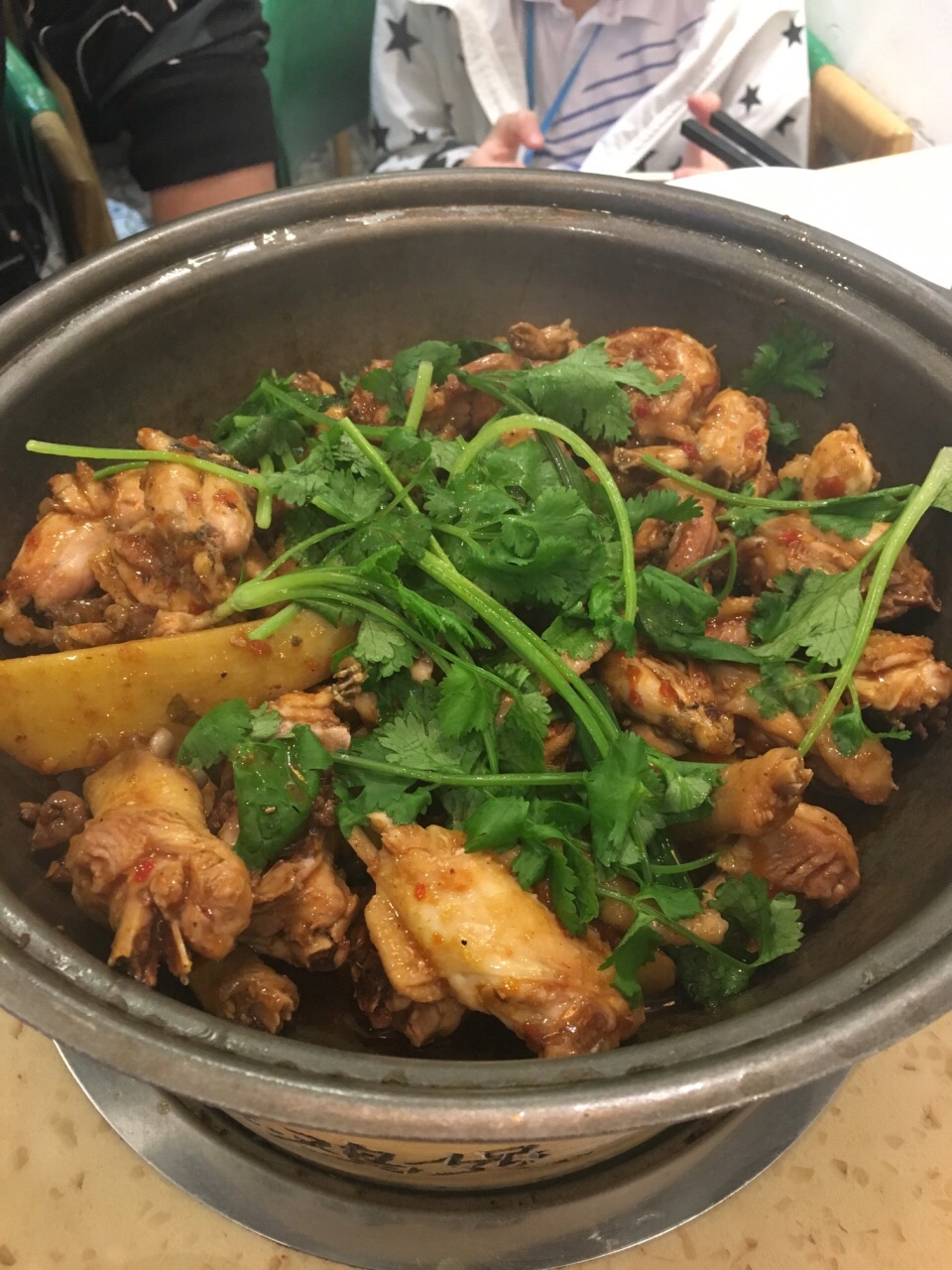 天河城逛街,转到这里来觅食偶然发现的,这家店本身在广州名气挺大的,总听别人提,正好碰上就去试试,店不大,位置有点挤,我们去的时候还有一个空台,后面就没位了,看了一下生意还不错,翻台率挺高的。上菜比较快,我们点了个香辣双鸡煲,味道挺好,喜欢味道浓郁一点的可以去试一试!