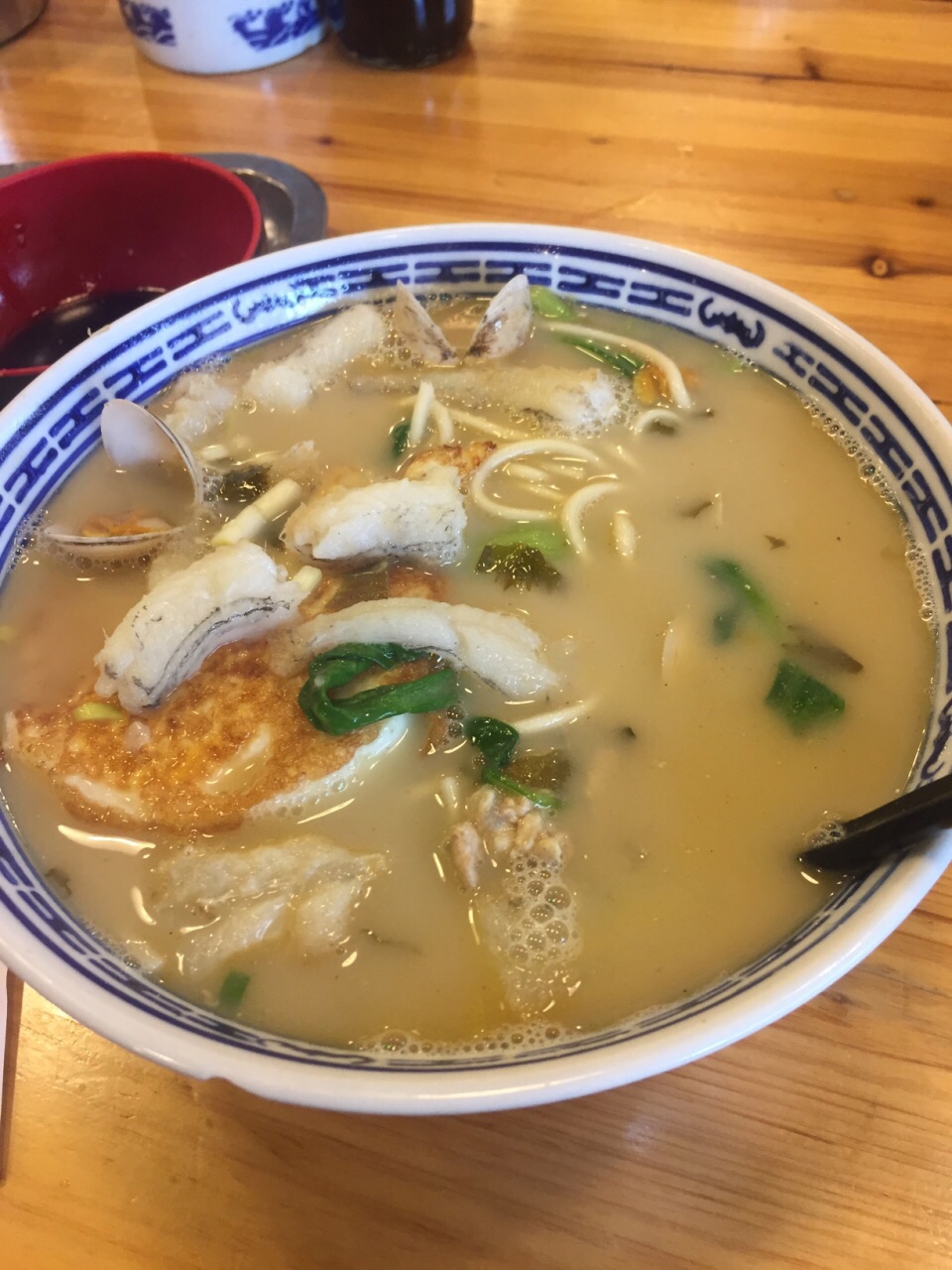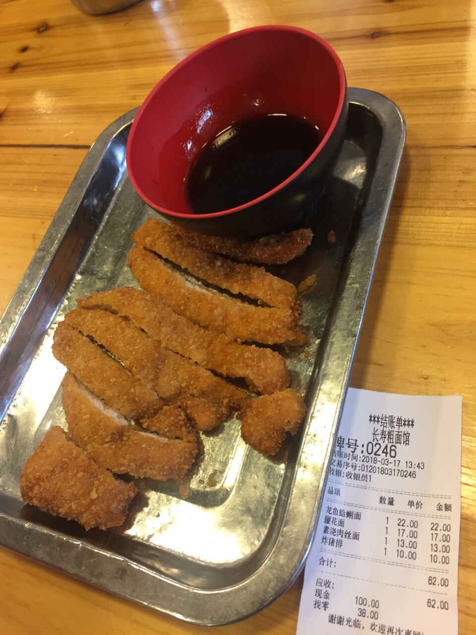 在高境开了蛮久的小店,更是被某美食节目推荐数次,已然成为网红面馆。“网红”最大的弊病就是让食客期望过大,自然失望也会更大。 [环境]顾客太多自然脏乱。 [服务]相当的快捷。作为一家面馆配备那么多年轻服务员可见生意有多好。 {炸猪排}无功无过,只是上来就闻到吉士粉的味道,个人不喜欢这种香精味。 面条“咸”“好咸”“非常咸”无食材鲜味,回家半路上就口渴难耐。