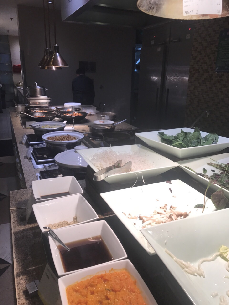网友2018-03-19海鲜有虾,贝类,还有烤肉串之类的,三文鱼刺身比较好,因为人不太多,吃起来不着急,蛋糕不错在酒店大堂后面,直对着门口,有点冷。菜品不是很多,菜就是几种。海鲜有虾,贝类,还有烤肉串之类的,三文鱼刺身比较好,因为人不太多,吃起来不着急,蛋糕不错!