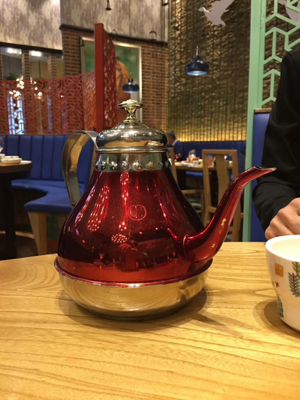专门来这家吃涮肉,据说是味道不错,特意来品尝。上来的是传统的铜火锅很有民族风格,锅子也很快,一会儿就开锅了。涮肉吃起来味道不错,肉很嫩,很是鲜美,锅底是清汤。他家的小他家料给的也很足各式各样的好几碗。他家的主食都很好吃,烤包子是特色。