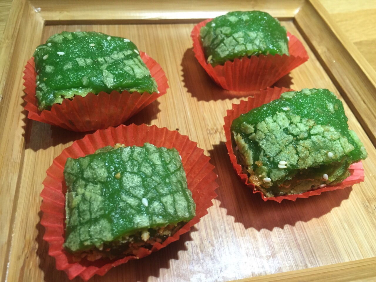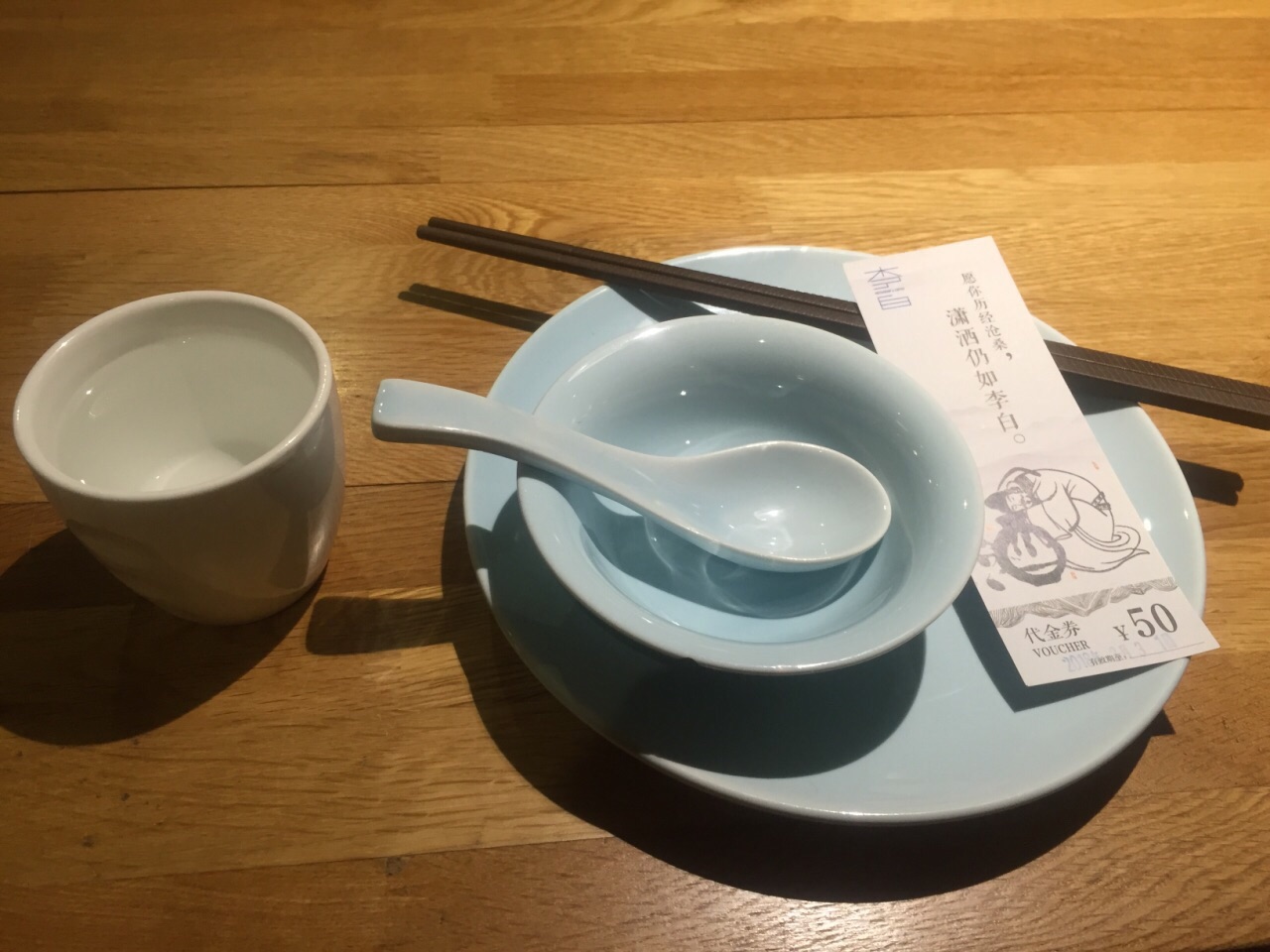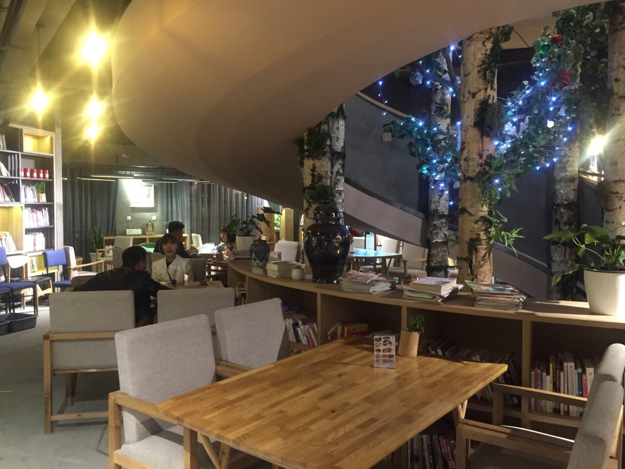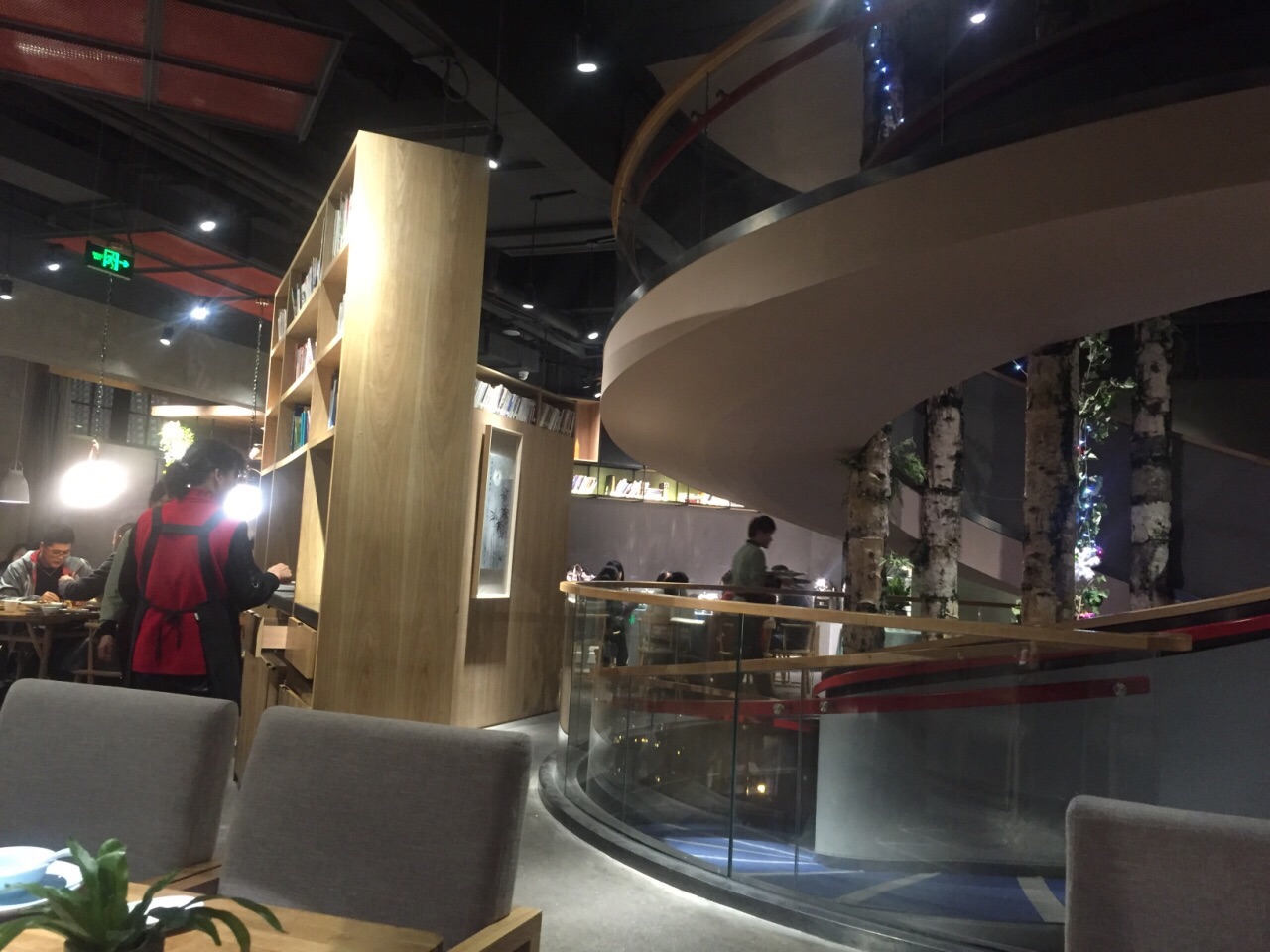 大众点评年会发的50元代金券还有10来天就要到期了,抓紧时间过来用。 李白餐厅一楼类似于书吧,满满的书架上都是图书,有沙发座供客户一边看书,一边喝咖啡吃蛋糕。走环形楼梯上二楼餐厅,代金券只能在二楼使用。 晚餐时间,店里生意很好,可能是我一个人过来的,服务员不大在意,每人招呼我,自己找座位,跟服务员要菜单,给了我一张餐厅的名片,扫背面的二维码点菜。 点了一碗云南野菌汤,下面放了蜡烛加热,热乎乎的野菌汤很鲜美,里面有好几种菌菇。 本来还点了2个红糖菠菜麻糍,2个葱包烩,提交菜单后,服务员过来说点心只能4个起点,那只能舍弃葱包烩,选择推荐的红糖菠菜麻糍了。 绿色的麻糍第一次吃到,里面放了红糖,花生碎和芝麻等,很香很软糯,缺点是端上来的时候,麻糍就不热,可能是早就做好了端出来的。