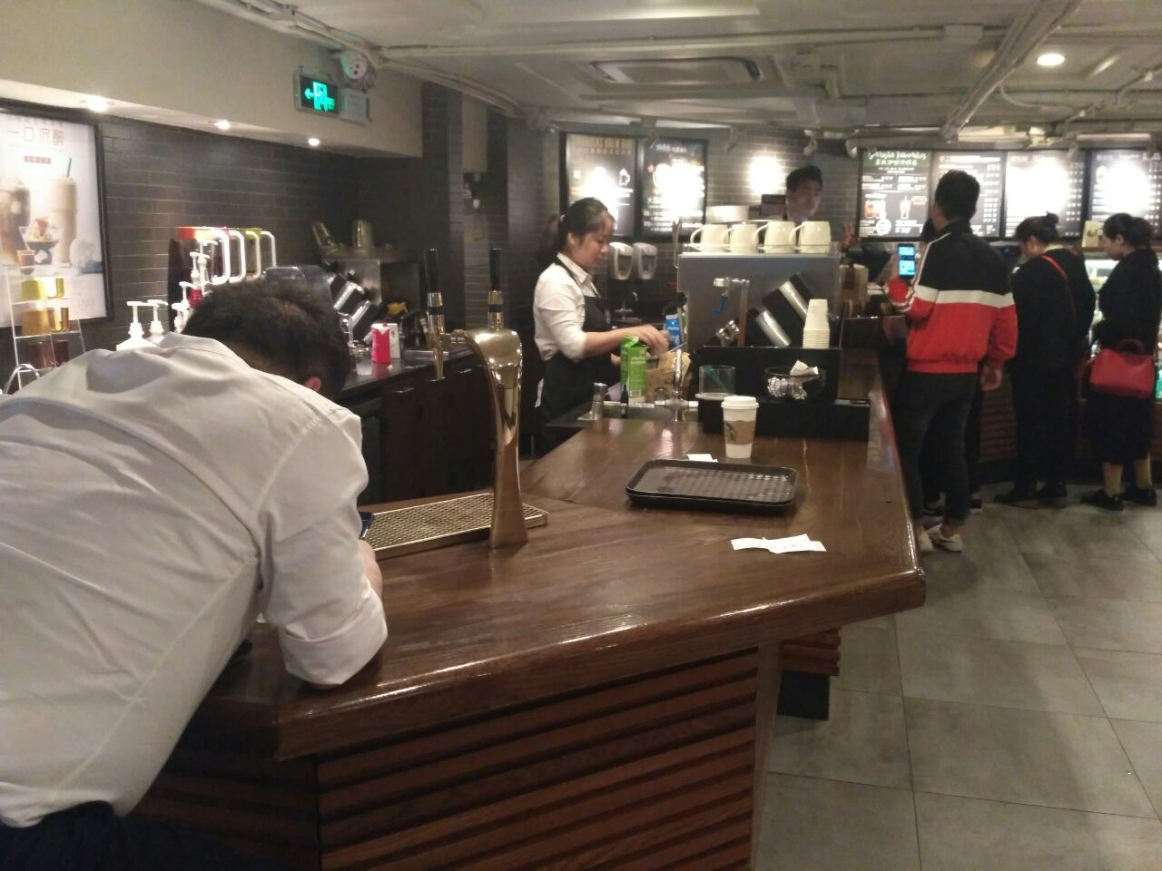 武林银泰A馆二楼,室内室外都可以进入,环境不错,服务员态度特别好,顾客好多,所以还是有些嘈杂。星巴克当季的樱花系列杯子都好好看啊,粉红樱花主题,少女心满满 抹茶星冰乐中杯三十一元, 抹茶味很浓,冰冰凉凉的,微甜,春天的味道。