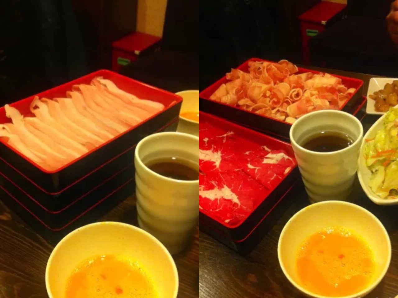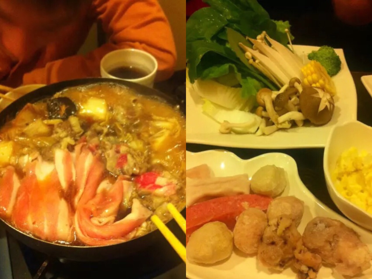 刚和老公恋爱的时候吃的,13年11月吧。 中午吃的午市,去得比较晚。98自助,感觉性价比还是蛮高的,虽然吃得不是很多,但是味道还算正宗 虽然环境没有momo好,锅子比较小,但是料很足,还有各种前菜和小吃~
