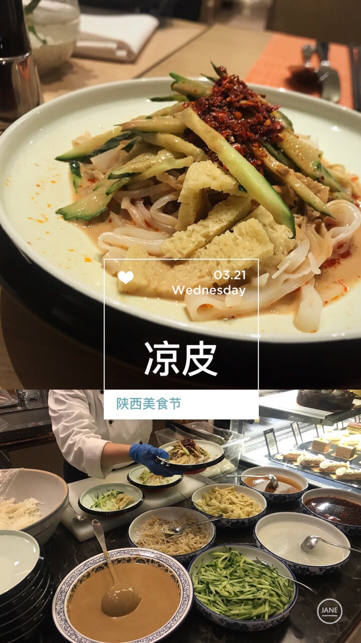 【济南希尔顿酒店及公寓 开·全日餐厅】陕西美食节(3.20-4.15)开幕~ 自助区当然少不了各种陕西美食小吃: 凉皮还是蛮喜欢的,记得让师傅适当放料,做成适合自己口味的咸度和辣度; 臊子面和肉夹馍因为个人忌口问题没能尝试,不过我单独拿了个馍,咬起来还是比较酥脆的; 葫芦鸡腿与我们这边的炸鸡腿略有不同,酥脆度没那么高,内层的肉较有滋味; 老陕白糖糕糖分比我们本土炸糕糖度稍减,感觉这玩意还是刚出油锅的好吃; 另一个份冷切凉糕更合我口味; 油泼秦川牛和秦韵宫保虾球表现的中规中矩; 餐厅的特色烧烤区等位的客人很多,口味来说我觉得:牛排>羊T骨>生蚝>烤三文鱼,羊肉串没吃,看外形有点焦; 甜品类和冰激凌表现也还不错; 【环境】 每次来这里都喜欢往外面眺望,夜景迷人~ 就餐环境一级棒,不管喜欢热闹还是安静都可以找到合适的位置。演奏区有外籍帅哥美女吹笛和弹奏乐曲。