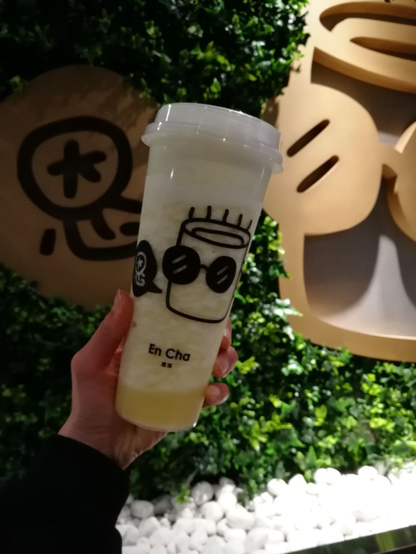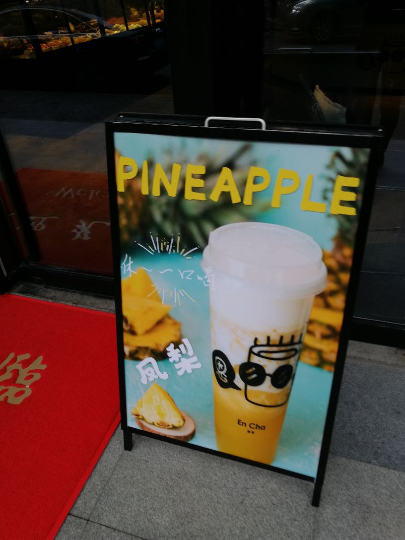 上面有奶盖,下面混合凤梨,口感清新。门口就看到恩仔凤梨的大海报,所以点了一杯品尝。冰冰的最好喝