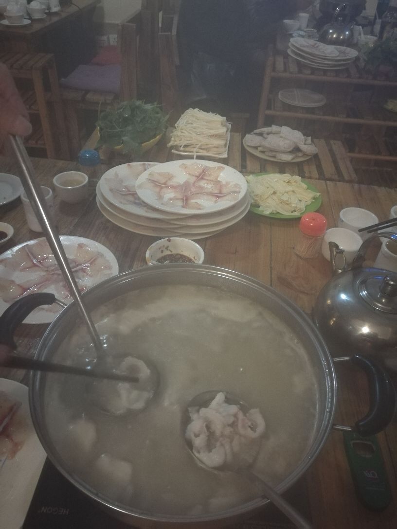 特别是在别的地方吃不到切得那么薄的双飞鱼片,涮三两下就熟了,两片肉中间夹着鱼皮,两边嫩,中间脆...口味不错,特别是在别的地方吃不到切得那么薄的双飞鱼片,涮三两下就熟了,两片肉中间夹着鱼皮,两边嫩,中间脆,口感很好,汤也很甜。