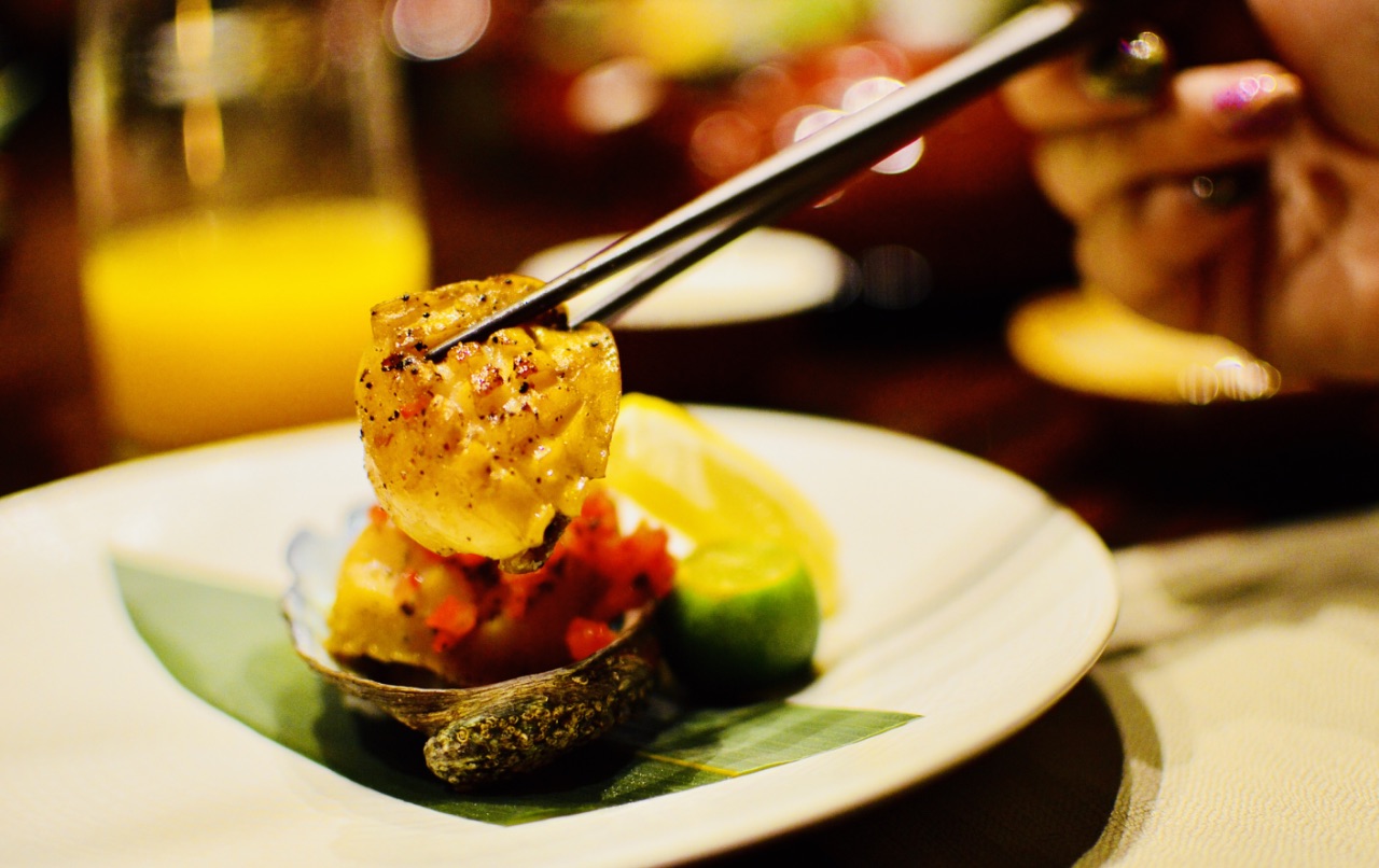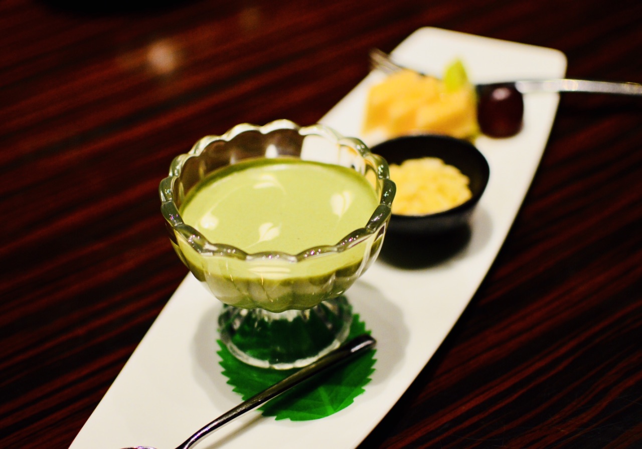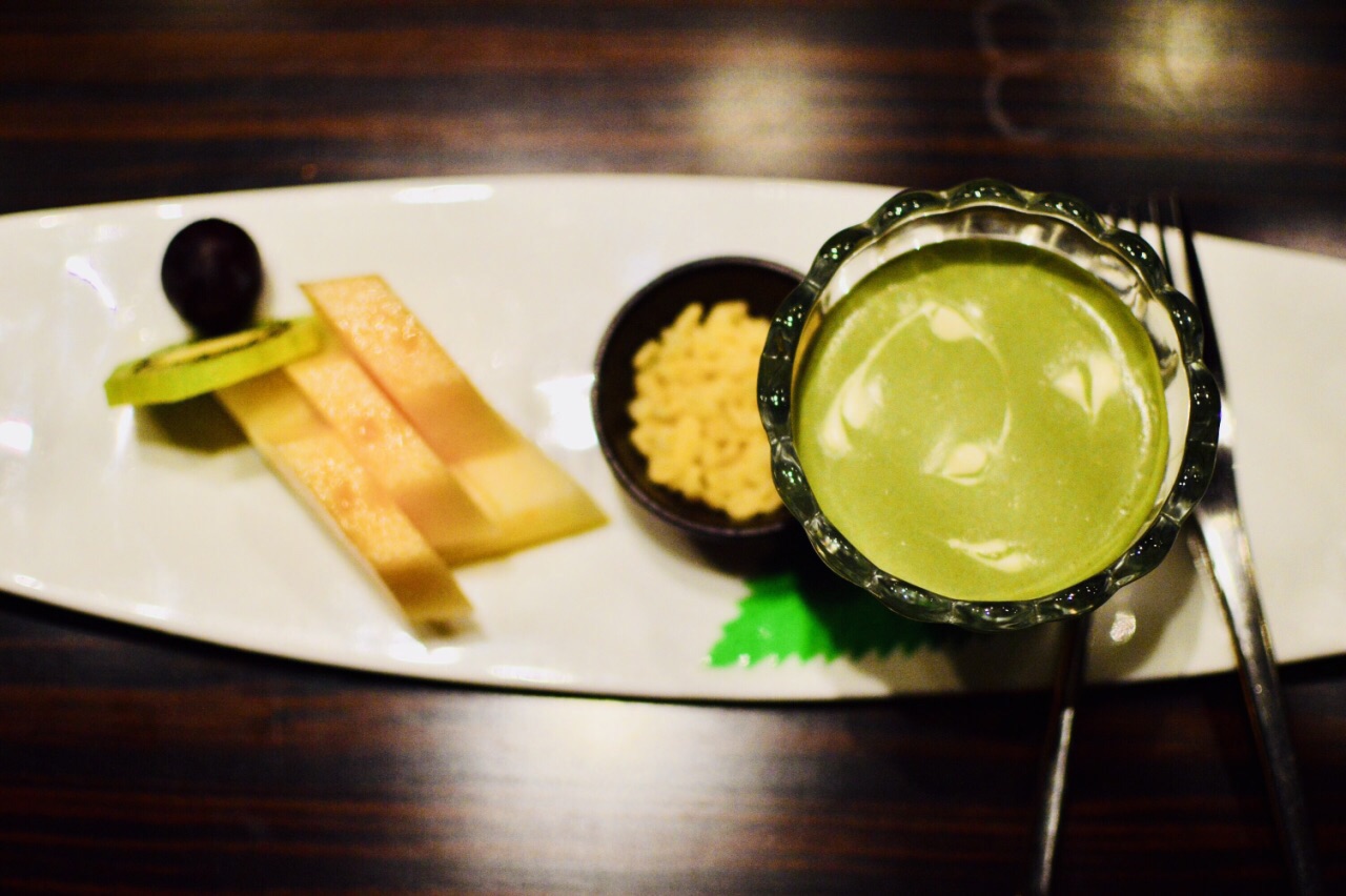 酒店内的锦·日本料理听说刚重装焕新,对于一个喜欢吃日料的人来说要来试试口味。名字也蛮讨喜的,锦鲤寓意美好如意,讨个好口彩。进门就发现玄关很特别,摸了一把,是实木百叶,层叠后很有感觉,实木元素在此运用的很多,给人以线条明朗、扎实之美。空间格局清晰,有下沉式日式榻榻米包房、也有西式的大包房还有铁板烧区域、4人卡座、酒吧区域等,选择用餐区域更为多样化,挺好,个人最爱日式tatami,和风味浓。另外这里的灯光设计很别致,一看就是特别设计过的,背景墙有花纹图腾和餐厅logo交相辉映。主要呈现的是精选的会席料理还有互动性很强的铁板烧,懒得用脑就选了会席料理,套餐形式,也可以根据需求ala carte。整一套 籣·会席料理品尝下来,搭配很有感觉三弦BGM,点个赞。CHEF精选前菜,根据当季食材来,有炙烤三文鱼球星寿司,造型可爱,上面还满是爆浆的三文鱼籽;澳洲菲力香薰牛排,很有嚼劲,点睛之笔是搭配的柠檬醋洋葱,开胃;西京酱法国鹅肝配开心果,开心果碾成碎包裹在鹅肝的外面,酱是日式特色,法式的鹅肝被日式厨师调理一番后呈现不同的感觉,当然鹅肝是同样的绵密。 清口的色拉特别爽口,是牛油果鲜橙什锦蔬菜色拉,鲜橙水分多很甜润。刺身可以选,跟小伙伴可以分享两种不同的选择,盘形很美,鲜活的青龙虾,350g左右的量,龙虾肉很晶莹,吃口鲜弹,头部后来还做了一碗龙虾泡饭,不能更赞。特选刺身拼盘,牡丹虾、鳌虾、金枪鱼、海胆、北极贝、三文鱼,这几个品种都是我的心水,从金枪鱼的部位来看感觉挺不错的。 松茸菌菇海鲜土瓶蒸,吃完生冷的刺身后来一碗汤暖暖胃。器皿很漂亮,挤点柠檬汁喝了好几碗,过瘾,鲜得自然还有松茸浓郁的菌香。 铁板烧姜汁鲜鲍鱼,鲍鱼切了花刀让味道跟渗入,姜味很温和,鲜鲍吃得出的弹牙。 铁板烧雪花肉眼牛肉配松茸酱,M7澳洲上等肉眼牛排,等级颇高,吃起来多汁,还切分成小块,一口一个满足,松茸酱是CHEF特调的,用牛排蘸一下更添香味。龙虾什锦泡饭,我很喜欢吃汤汤水水的泡饭,食材就是前面刺身剩下的虾头,由此汤都呈橙黄色,一碗下肚眉毛差点掉光,鲜!甜品和时令水果作为收尾也是完美,有抹茶布丁,抹茶中带点苦涩,吃上去又绵密无比,可以加点苞米,一起吃非常香。蜜瓜很甜,这份套餐开业净价458元还是值得安利一记,服务很温柔也是日式标准。