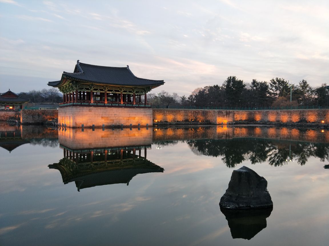 ...州的名片景点,曾经是新罗国的宴会举办地,这也是周都变不了亭台楼阁中间的水池映照下来是十分的漂亮