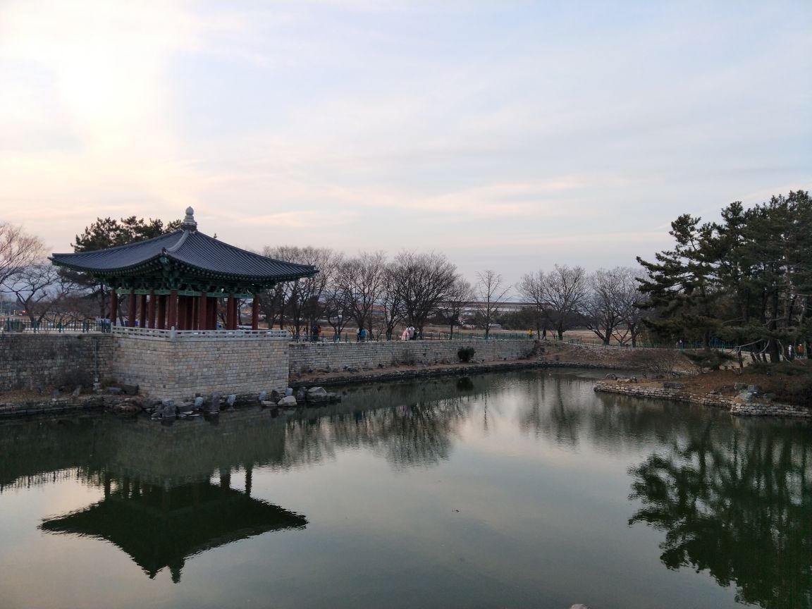 这个地方是庆州的名片景点,曾经是新罗国的宴会举办地,这也是周都变不了亭台楼阁中间的水池映照下来是十分的漂亮。 尤其是晚上过来这里开的那之后会更漂亮,建议的是傍晚的时候过来一直等到晚上才离开是最好的。 这里之前曾经被荒废过,只剩下大雁和鸭子,所以才有了另外一个名字叫做雁鸭池。 是一个收费景点但是还是值得过来的,从半月城走过对面就是。 门口附近还有档鸡蛋饼挺好吃,就是贵了点。