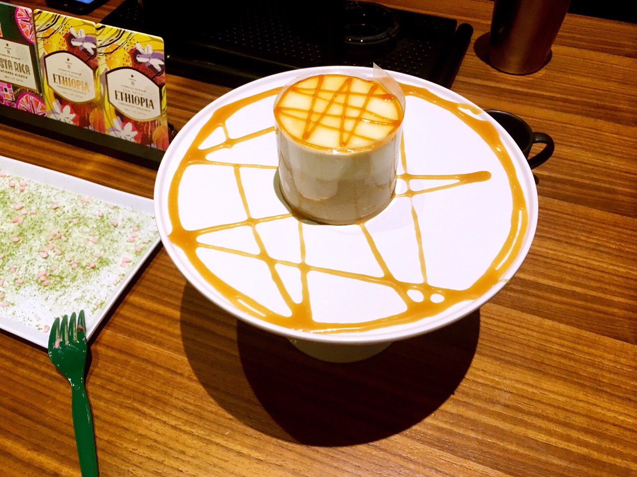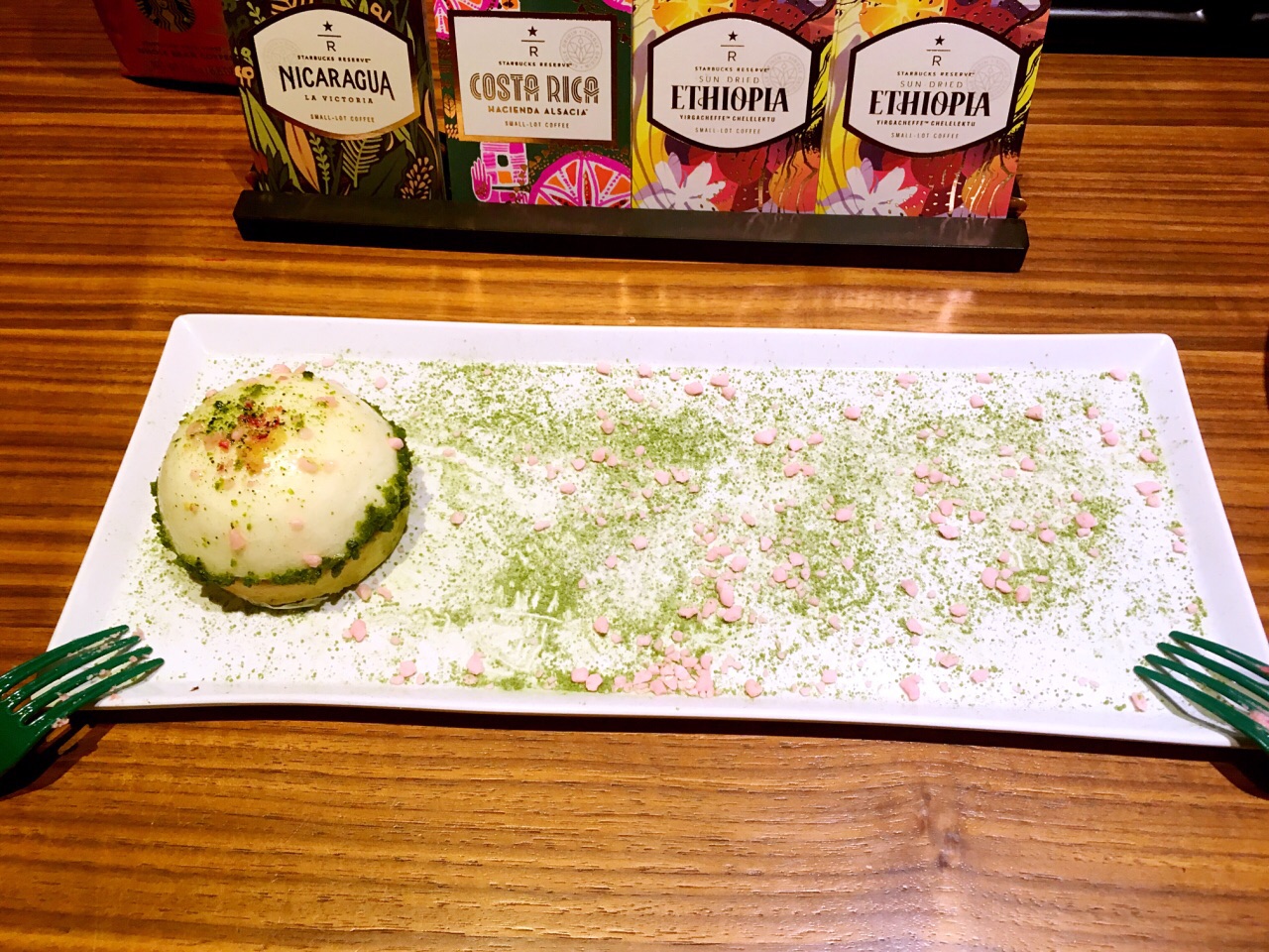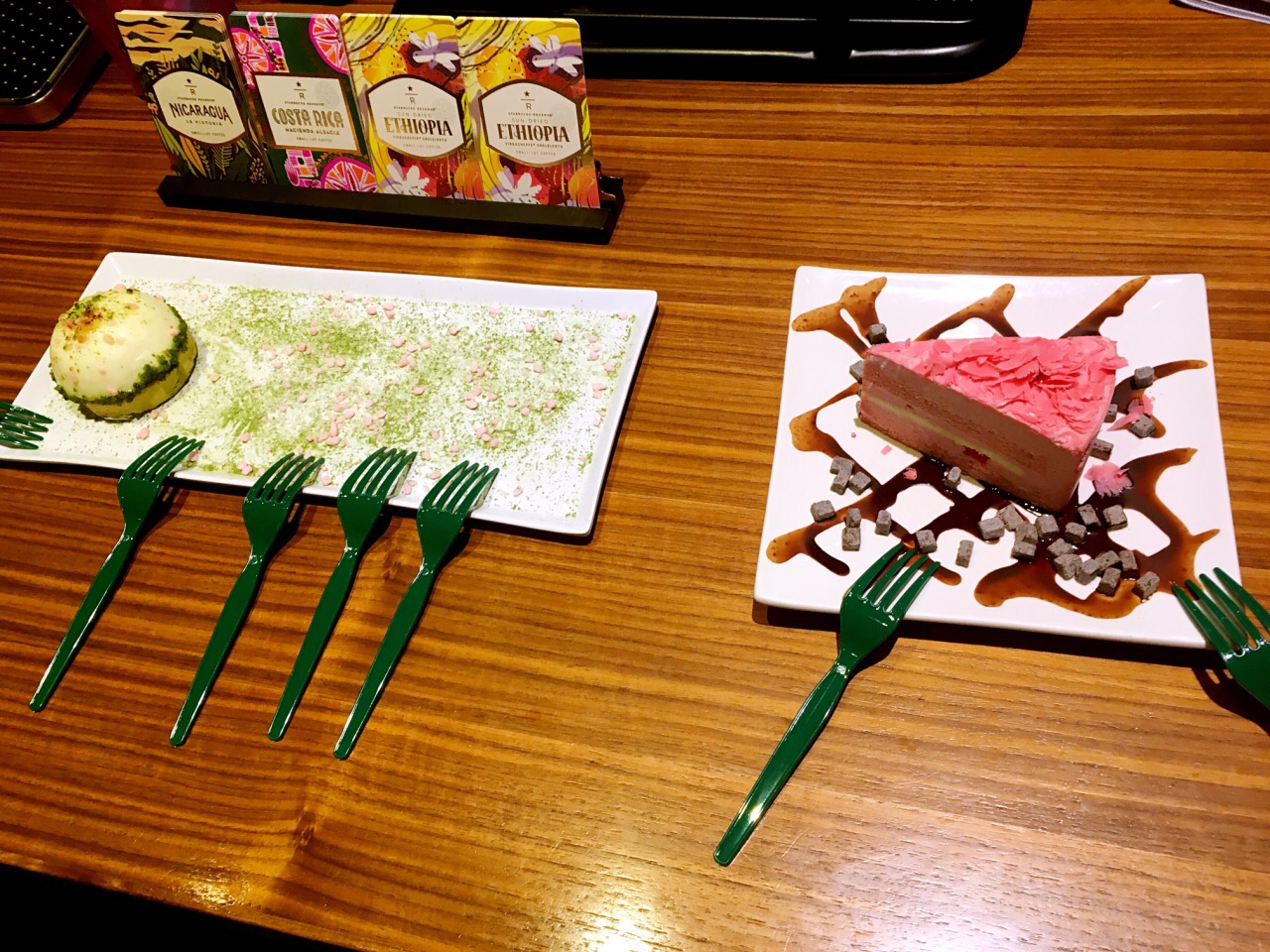 终于在这一年樱花季买到了心仪的樱花星礼卡,从此可以将樱花随身携带;如落樱满地般的樱之花意慕斯蛋糕,颜值太高!树莓搭配樱桃果茸,口感偏酸,搭配顶部坠落的片片甜甜的樱花瓣,很美味;金枪鱼帕尼尼加热后口感更好,有点微辣,厚厚的金枪鱼压层,分量超足。之后参加了一次咖啡教室,这家店的咖啡教室非常好,人不多,每次都很有趣。在咖啡教室DIY的主角,女神节特饮之樱之粉红拿铁,第二日去买了2杯。顶部淡奶油为覆盆子奶油、桃花糖融化得太快了,因此建议不要搅拌后喝。让顶部奶油多加点,做咖啡的女人就装作忘记了,糊弄一下的顶部奶油,让我昨晚对这家店的好感瞬间全无。