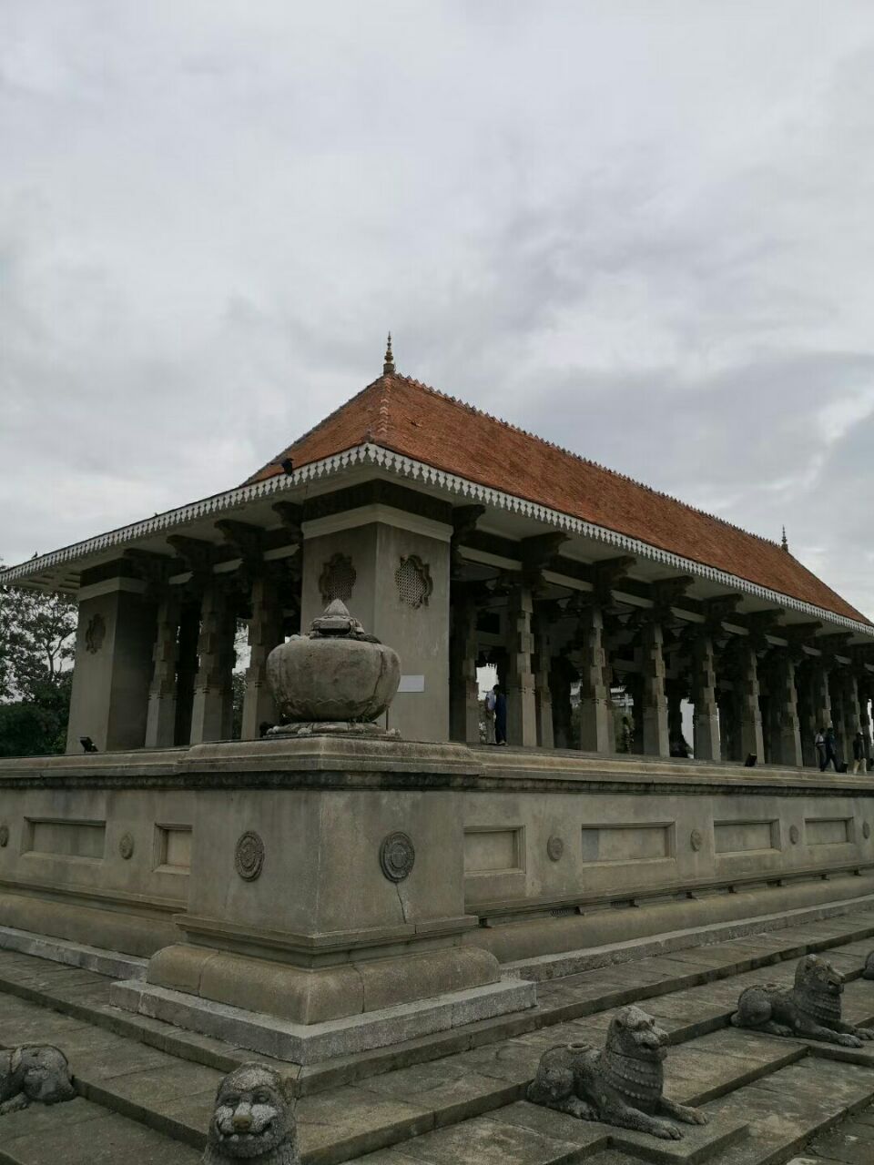 去的那天,天气阴沉沉的不透彻。解放广场不大 独立纪念馆就在他的一侧,前面有第一任总统的等身塑像。后面是斯里兰卡风格的觐见厅,外面是花岗岩结构,里面是大理石构成,非常肃穆。是科伦坡的人气景点,本国游客非常多。