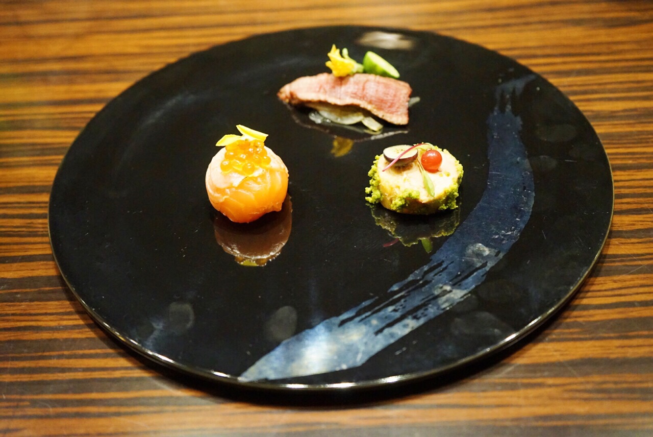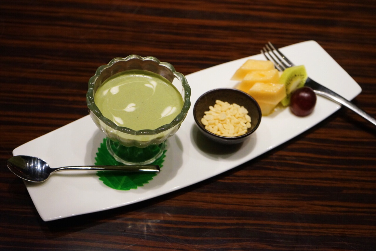 日本归来还是有点意犹未尽。 朋友路过上海,晚餐又约了日料。 上海南站出来走走10分钟左右,铂尔曼酒店的两楼。 朋友请客,于是不客气点了蘭会席料理。 前菜最爱西京酱鹅肝配开心果,融合了西式的做法,鹅肝入口即溶,温柔妥帖~ 牛油果什锦蔬菜色拉,本宫最爱的牛油果和橙子搭配,油醋汁淋在蔬菜色拉上,清新爽口的开胃前菜。 刺身和朋友点了各一种。小青龙刺身晶莹剔透,Q弹有嚼劲。刺身拼盘则品种丰富,牡丹虾、北极贝、三文鱼、鳌虾等7种,可以一次吃到过瘾。 铁板烧是重头戏,M7的澳洲和牛,鲜嫩多汁,油脂丰沛,简单的蘸一点胡椒盐,原滋原味的和牛味道最嗲。 土瓶蒸的器皿看起来应该是日本订制,底部还有年份,看起来摸起来都很有质感。初春时节乍暖还寒,一杯温热的菌菇海鲜汤,熨帖着肠胃。 抹茶布丁丝毫不逊色于京都吃过的老字号,微苦的抹茶味,余韵悠长,布丁柔软细腻,搭配的脆米撒上去让口感更丰富。 晚餐吃得好,心情也跟着变得晴朗起来。