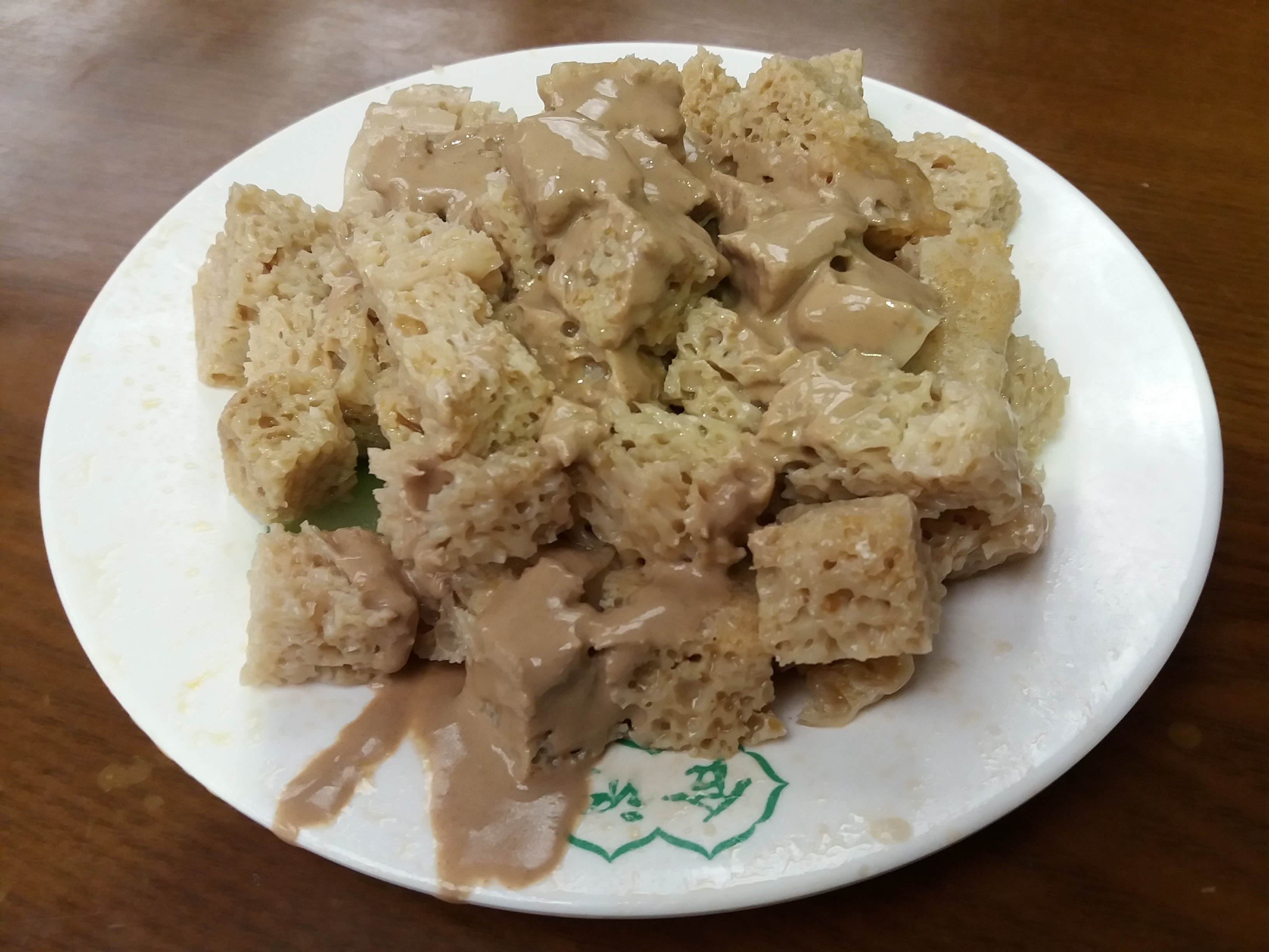 4、合记的烤麸特好吃,冷菜,简单开水里过一下后,浇上香油、花生酱,立刻就入味了,烤麸的这种吃法爽口