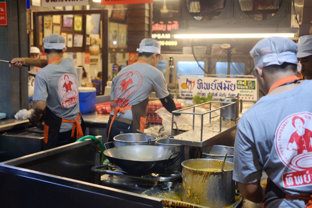 在泰国的最后一天行程,朋友推荐了这家店,说是最好吃的炒粉,果然,晚上十二点多过来还是有超多人在排队!门口大概有十几个厨子流水线作业,其实这家的粉的做法有点像蛋包饭,只不过里面的饭换成了炒河粉,的确变得更鲜香了,不过一定要趁热吃,我有打包一份回酒店,凉了,就不好吃了!
