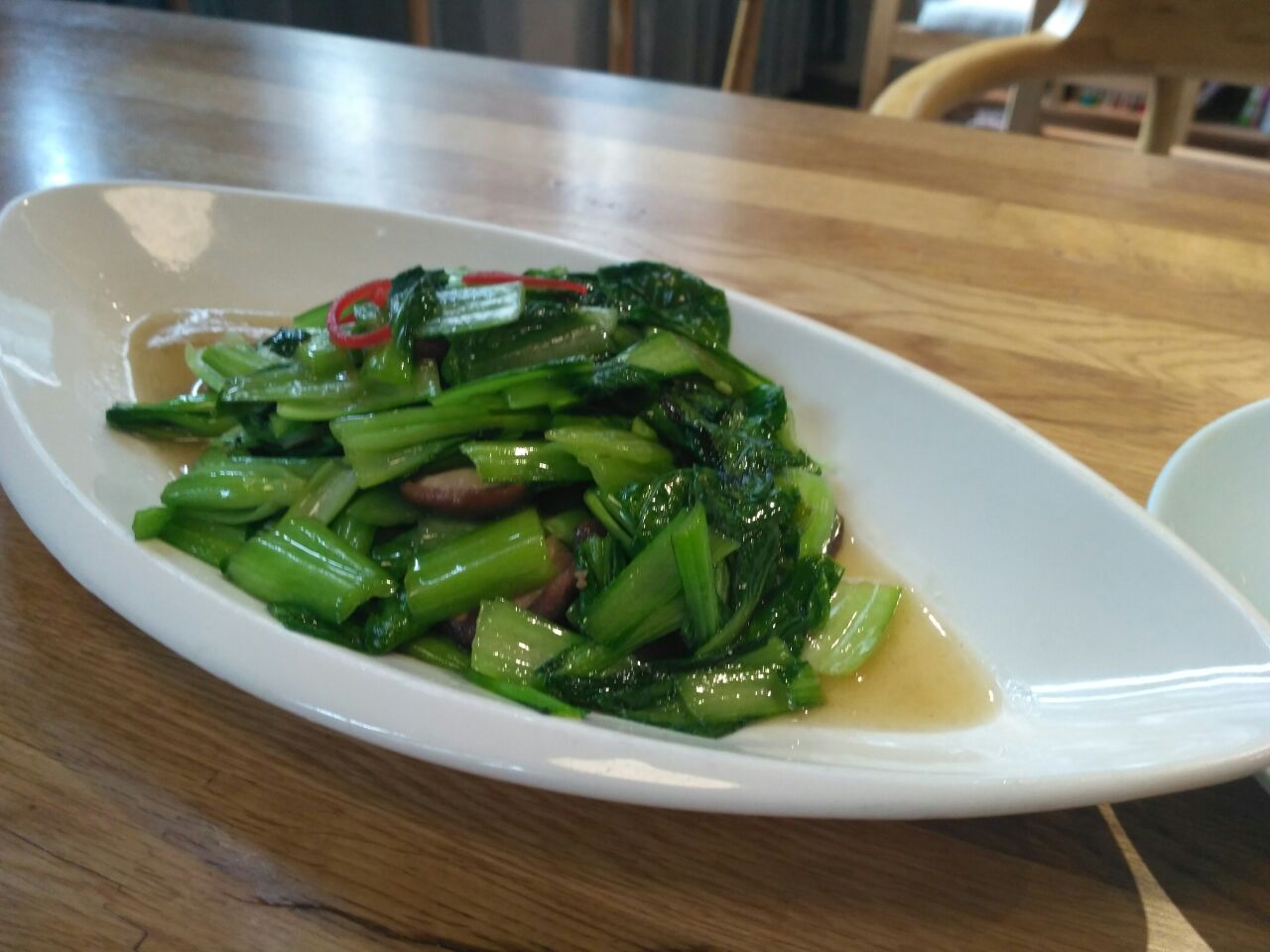 李白餐厅环境很好,里面有好多书,就像在图书馆里用餐,一楼二楼都有很多座位,服务员态度很好,午餐时段顾客特别多。 【片川】小份18,很大一碗,传统做法,汤头鲜美,猪瘦肉和笋片,面条筋道富有弹性! 【百合云耳】酸甜微辣,清爽开胃。 【清炒时蔬】味道很好,清爽不清淡。很好吃。